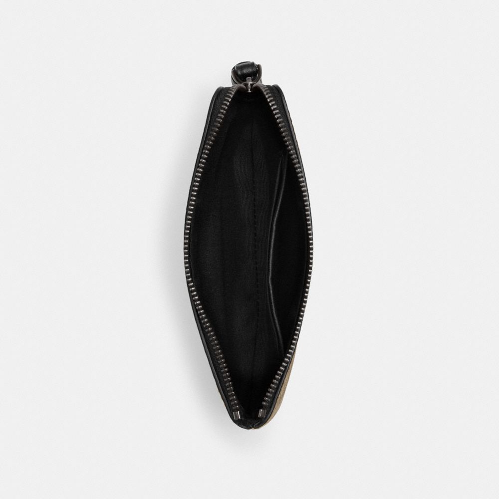 | Signature coated canvas and smooth leather | Two credit card slots | Zip-top closure, fabric lining | Wrist strap attached | 6 1/4" (L) x 4" (H) x 1/2" (W)|Style No. CN006|