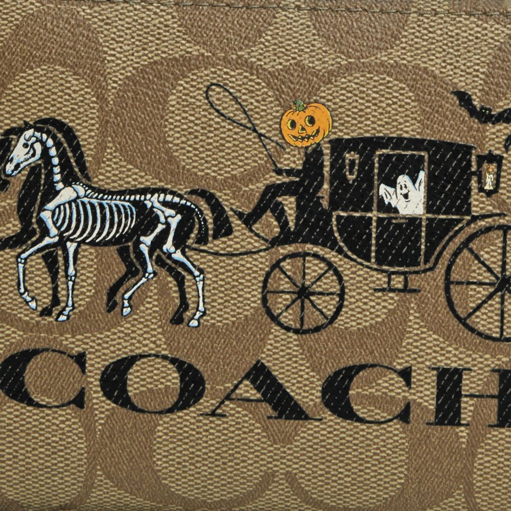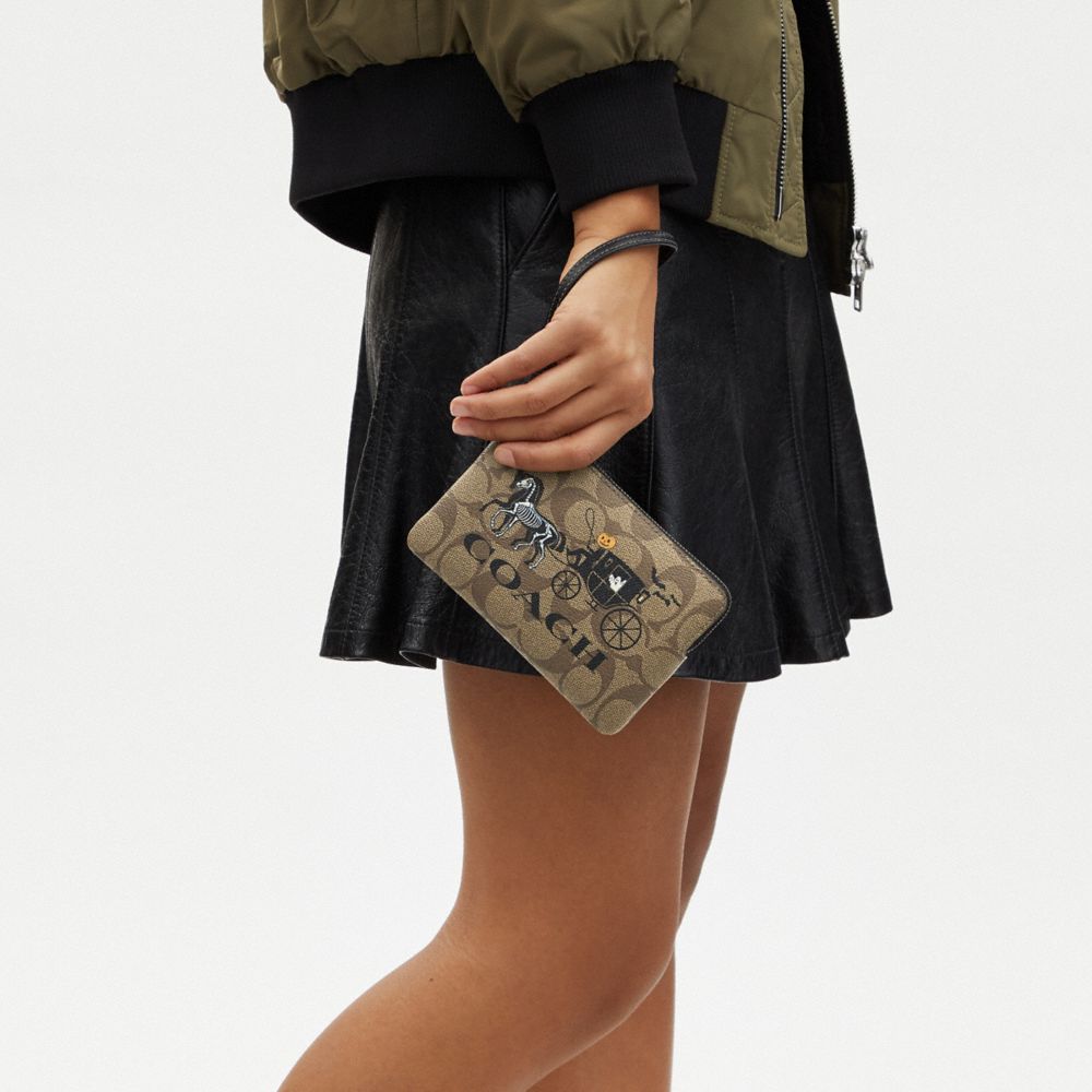 CORNER ZIP WRISTLET IN SIGNATURE CANVAS WITH HALLOWEEN HORSE AND CARRIAGE (COACH CN006)