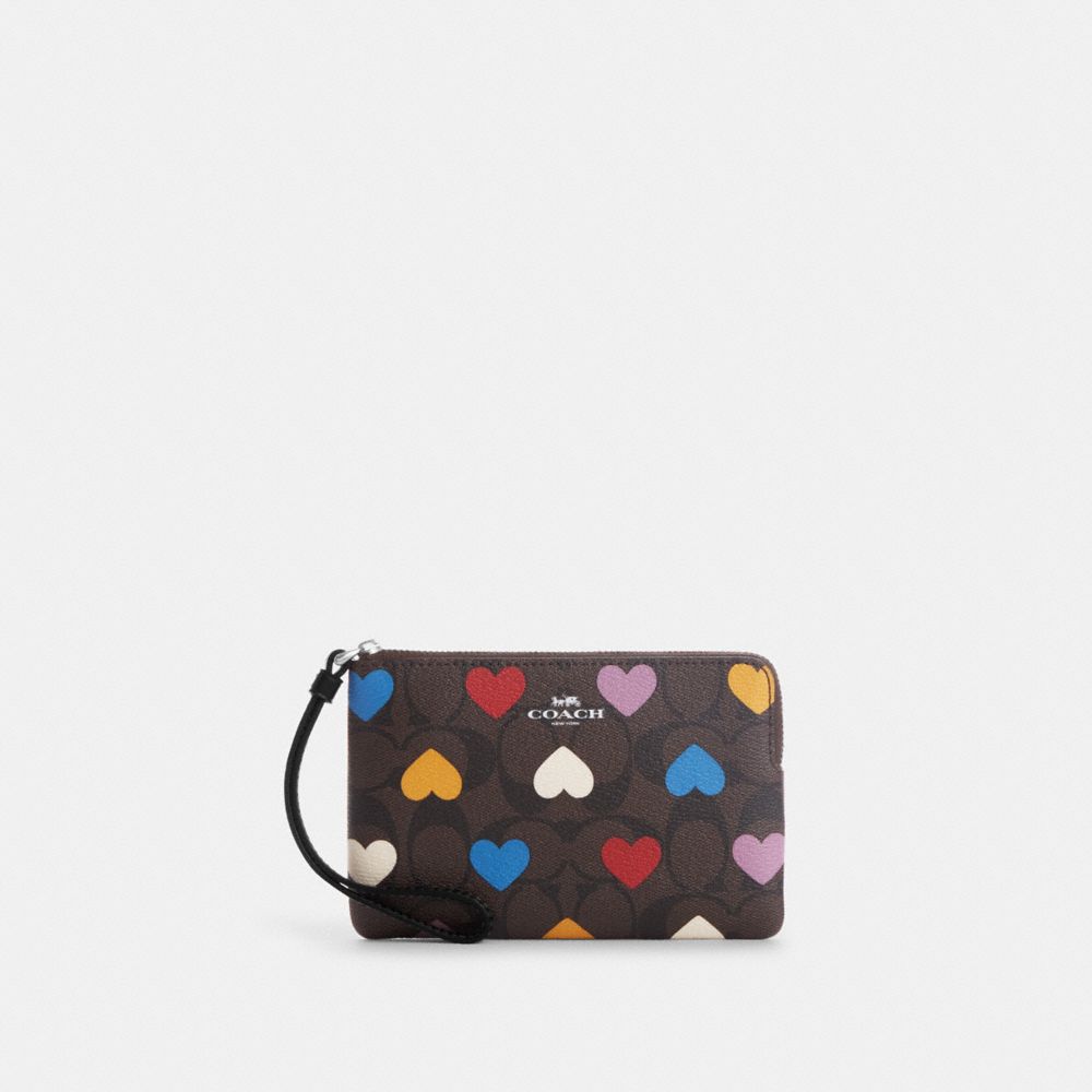 COACH FACTORY OUTLET PRICE CHART - CP347 - CORNER ZIP WRISTLET IN SIGNATURE CANVAS WITH HEART PRINT - SILVER/BROWN BLACK MULTI