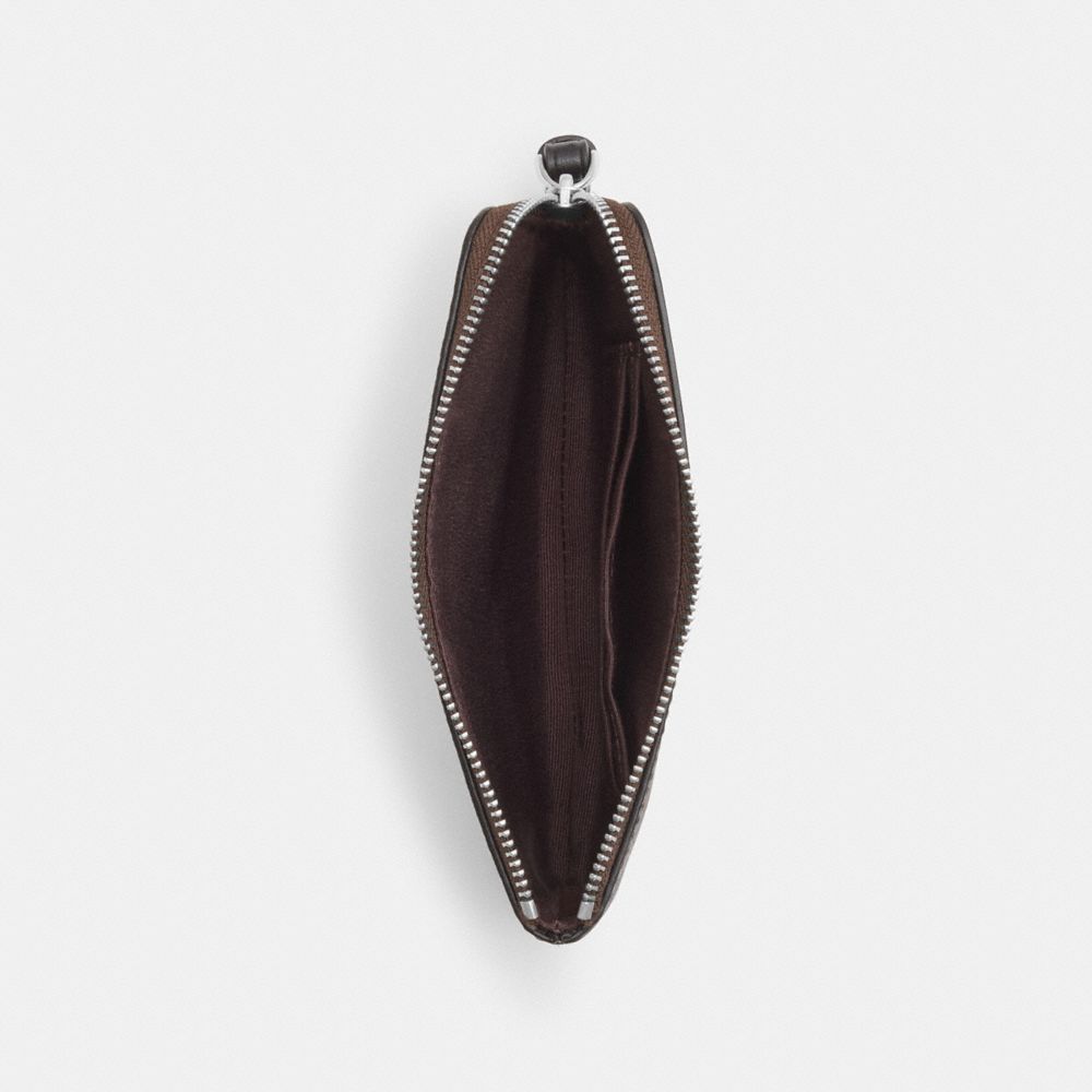 | Signature coated canvas and smooth leather | Two credit card slots | Zip-top closure, fabric lining | Wrist strap attached | 6 1/4" (L) x 4" (H) x 1/2" (W)|Style No. CP347|