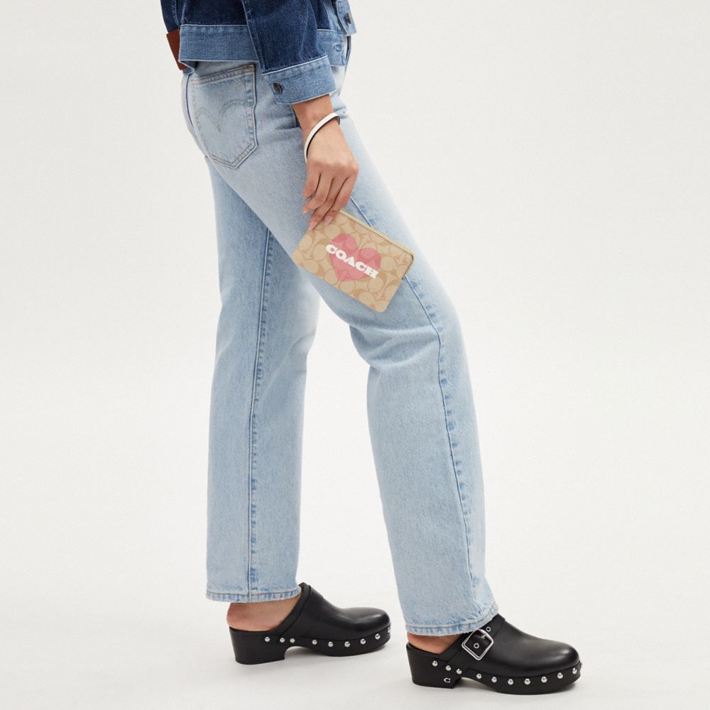CORNER ZIP WRISTLET IN SIGNATURE CANVAS WITH HEART PRINT (COACH CP436)