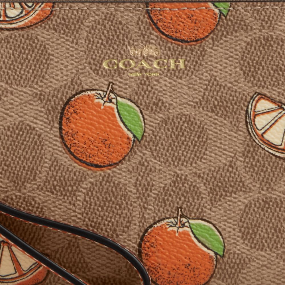 CORNER ZIP WRISTLET IN SIGNATURE CANVAS WITH ORANGE PRINT (COACH CBB82)