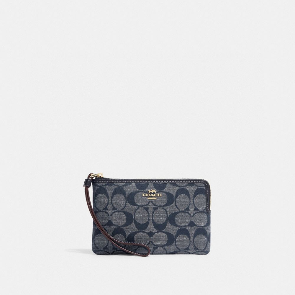 COACH FACTORY OUTLET PRICE CHART - CH371 - CORNER ZIP WRISTLET IN SIGNATURE CHAMBRAY - GOLD/DENIM MULTI