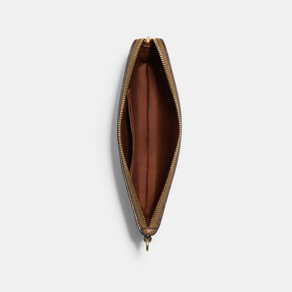 | Signature coated canvas, printed coated canvas and smooth leather | Inside credit card slots | Zip-top closure, fabric lining | Detachable wrist strap | Large pouch: 7 3/4" (L) x 4 3/4" (H) | Medium pouch: 6 1/4" (L) x 4" (H) | Small pouch: 5" (L) x 3 1/4" (H)|Style No. CE658|