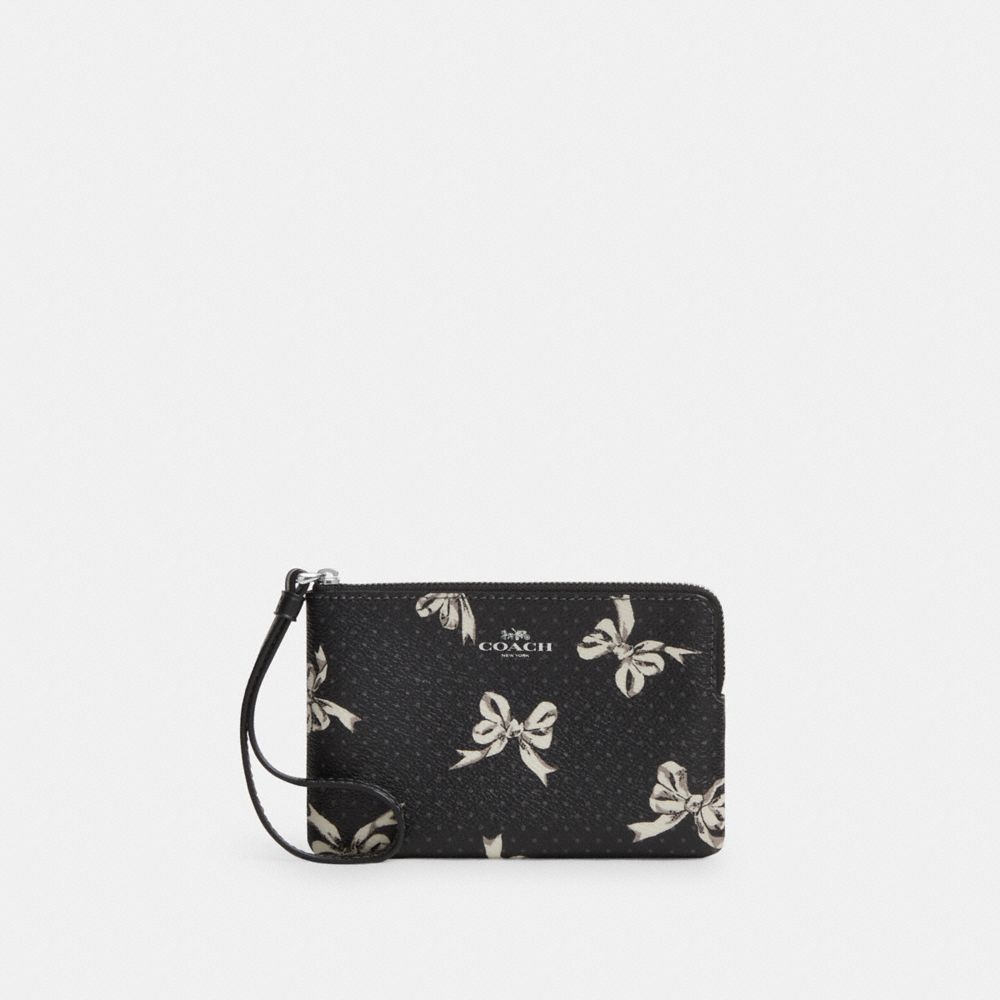 COACH FACTORY OUTLET PRICE CHART - CZ441 - CORNER ZIP WRISTLET WITH BOW PRINT - SILVER/BLACK MULTI