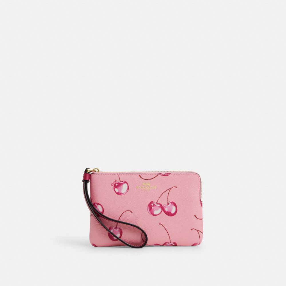 COACH FACTORY OUTLET PRICE CHART - CR819 - CORNER ZIP WRISTLET WITH CHERRY PRINT - IM/FLOWER PINK/BRIGHT VIOLET
