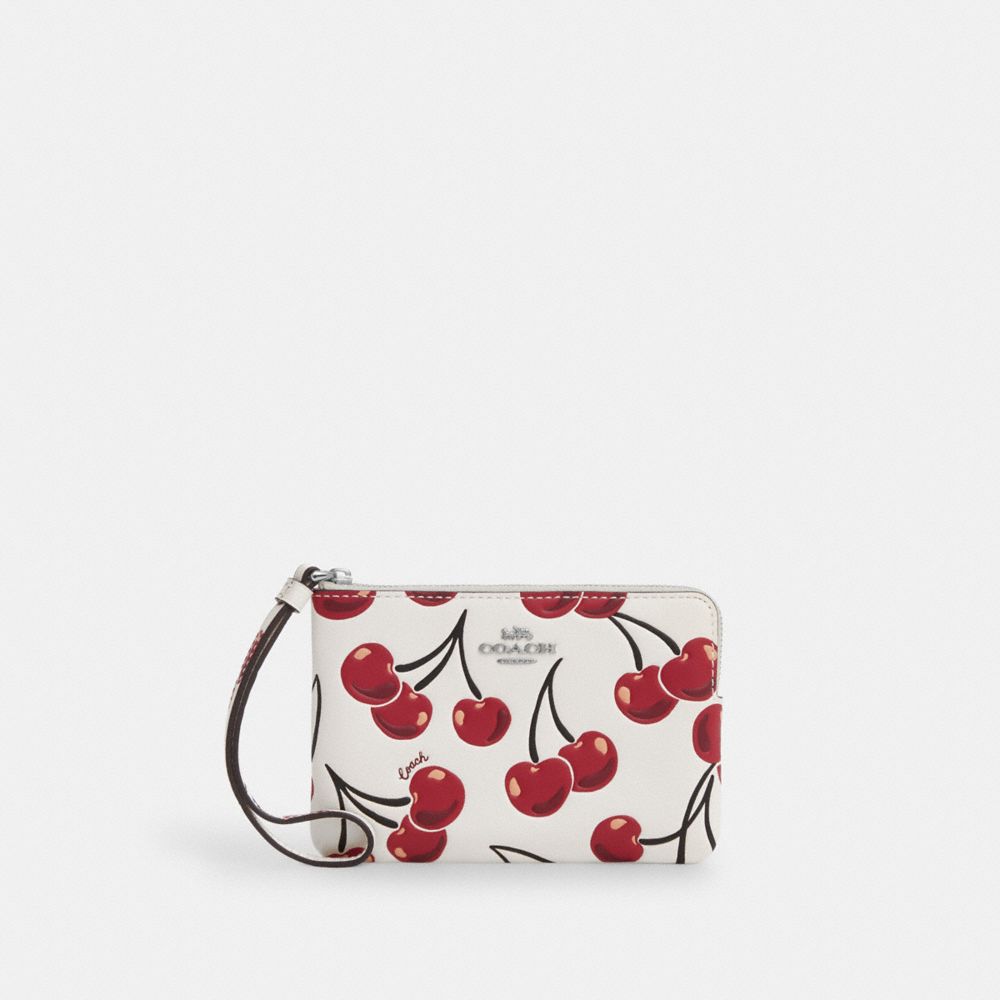COACH FACTORY OUTLET PRICE CHART - CZ451 - CORNER ZIP WRISTLET WITH CHERRY PRINT - SILVER/CHALK MULTI