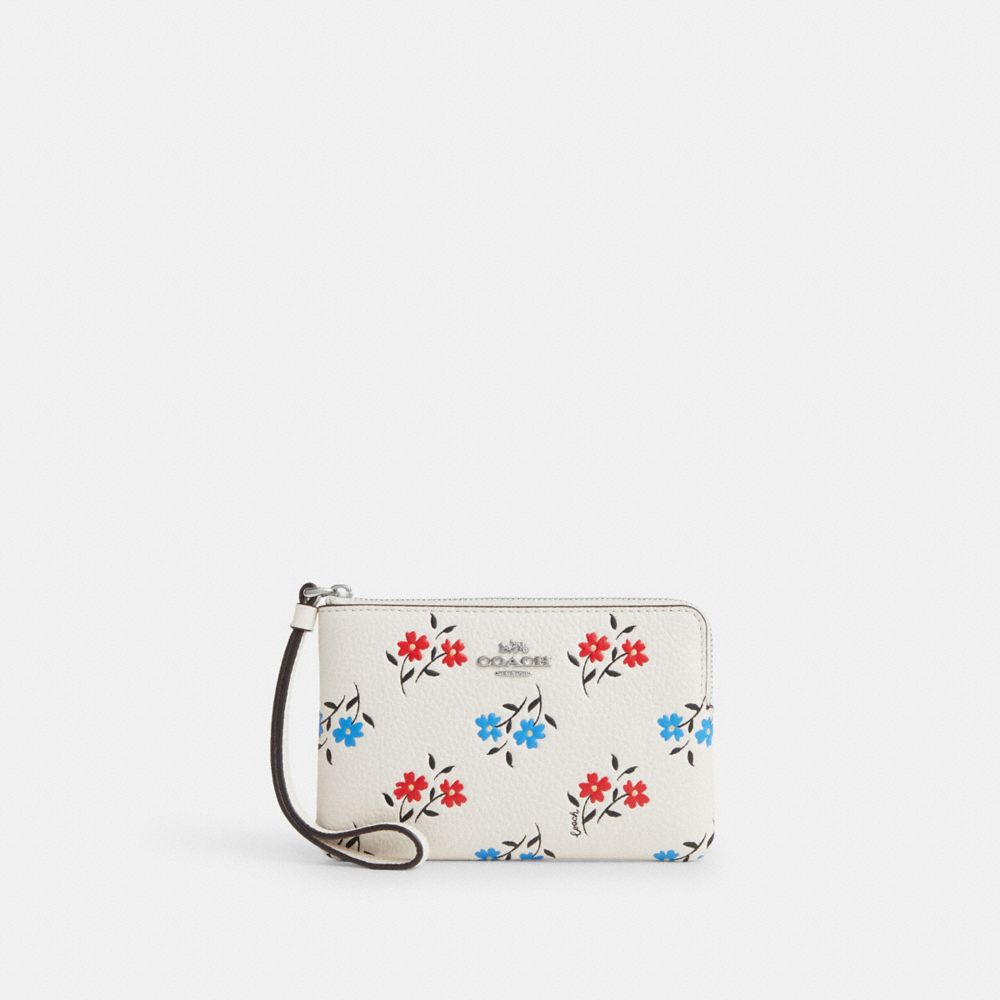 COACH FACTORY OUTLET PRICE CHART - CT988 - CORNER ZIP WRISTLET WITH FLORAL PRINT - SILVER/CHALK MULTI