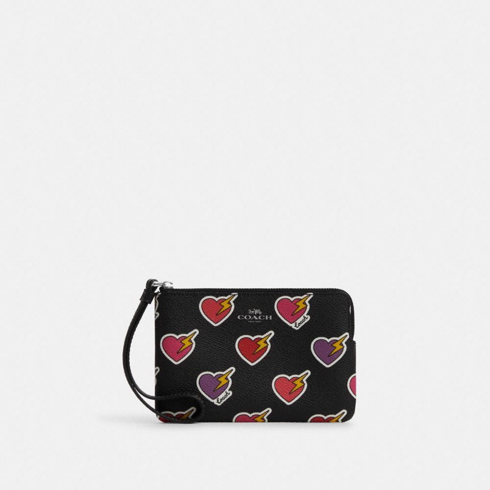 COACH FACTORY OUTLET PRICE CHART - CW857 - CORNER ZIP WRISTLET WITH HEART BOLT PRINT - SILVER/BLACK MULTI