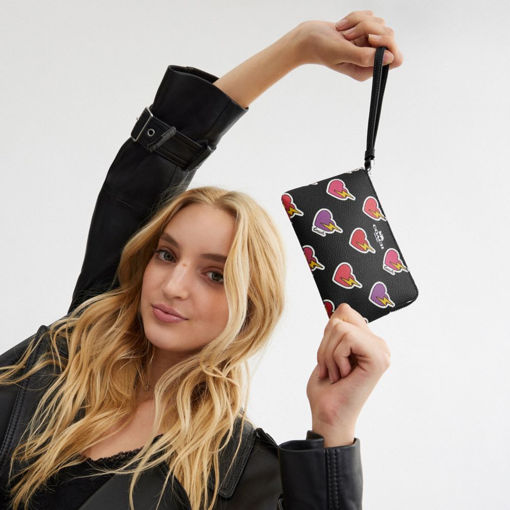 CORNER ZIP WRISTLET WITH HEART BOLT PRINT (COACH CW857)