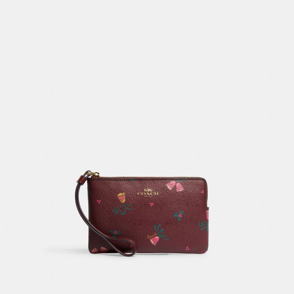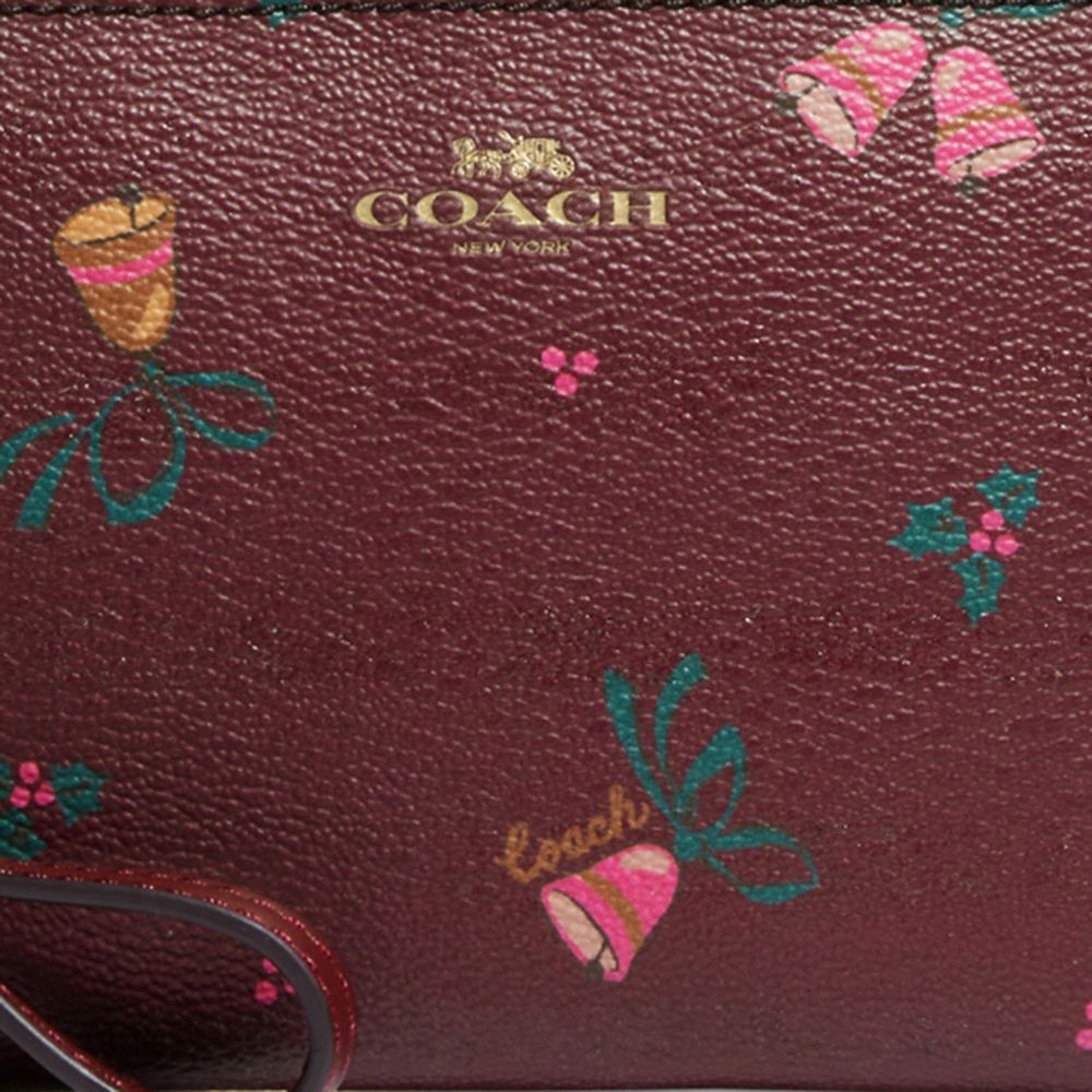 COACH FACTORY OUTLET PRICE CHART - CE920 - CORNER ZIP WRISTLET WITH HOLIDAY BELLS PRINT - GOLD/BLACK CHERRY MULTI