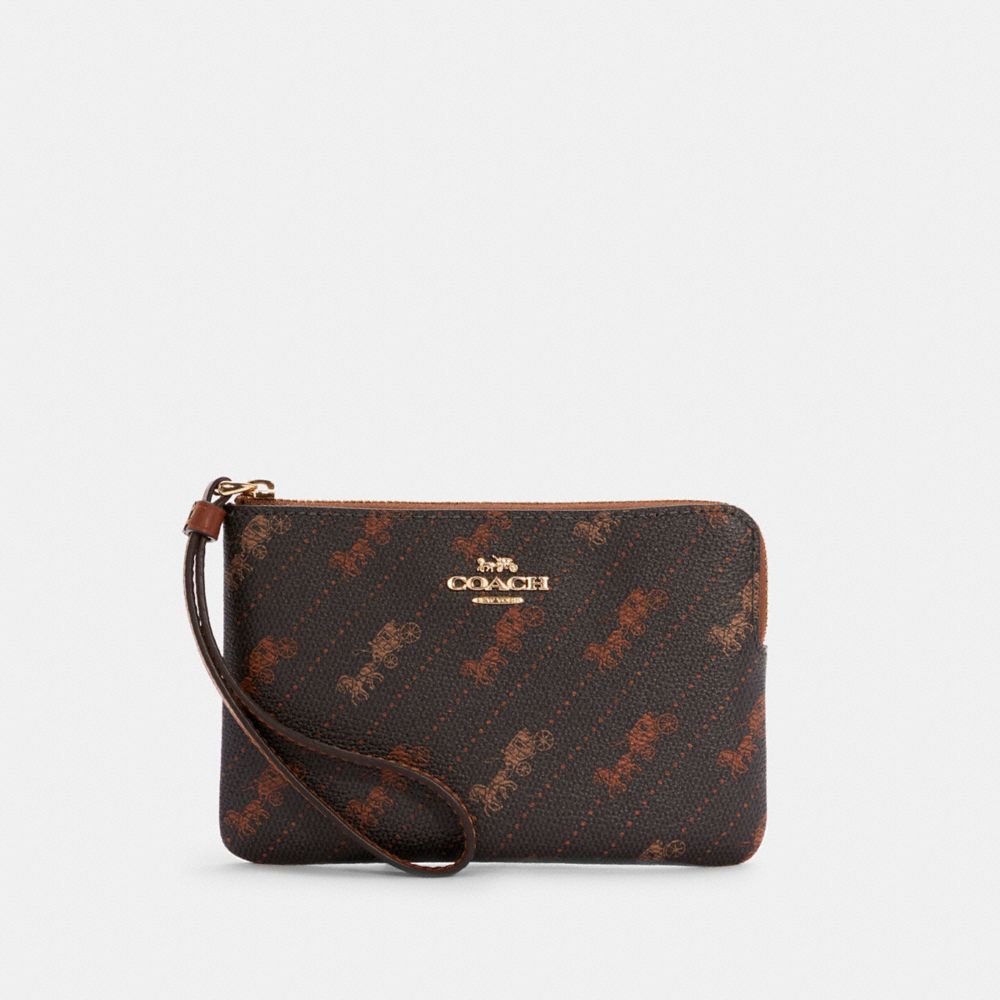CORNER ZIP WRISTLET WITH HORSE AND CARRIAGE DOT PRINT (COACH C4466)