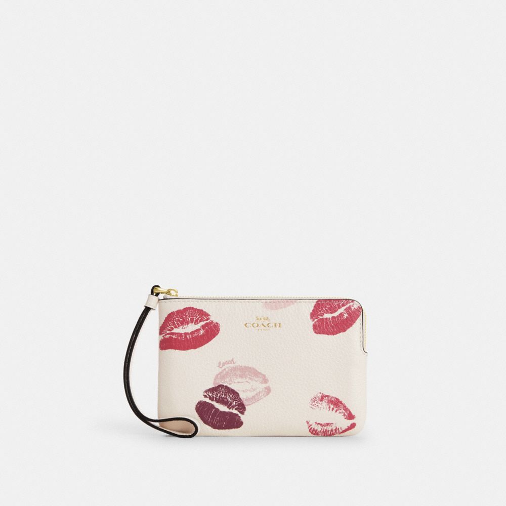 COACH FACTORY OUTLET PRICE CHART - CZ949 - CORNER ZIP WRISTLET WITH LIPS PRINT - GOLD/CHALK MULTI