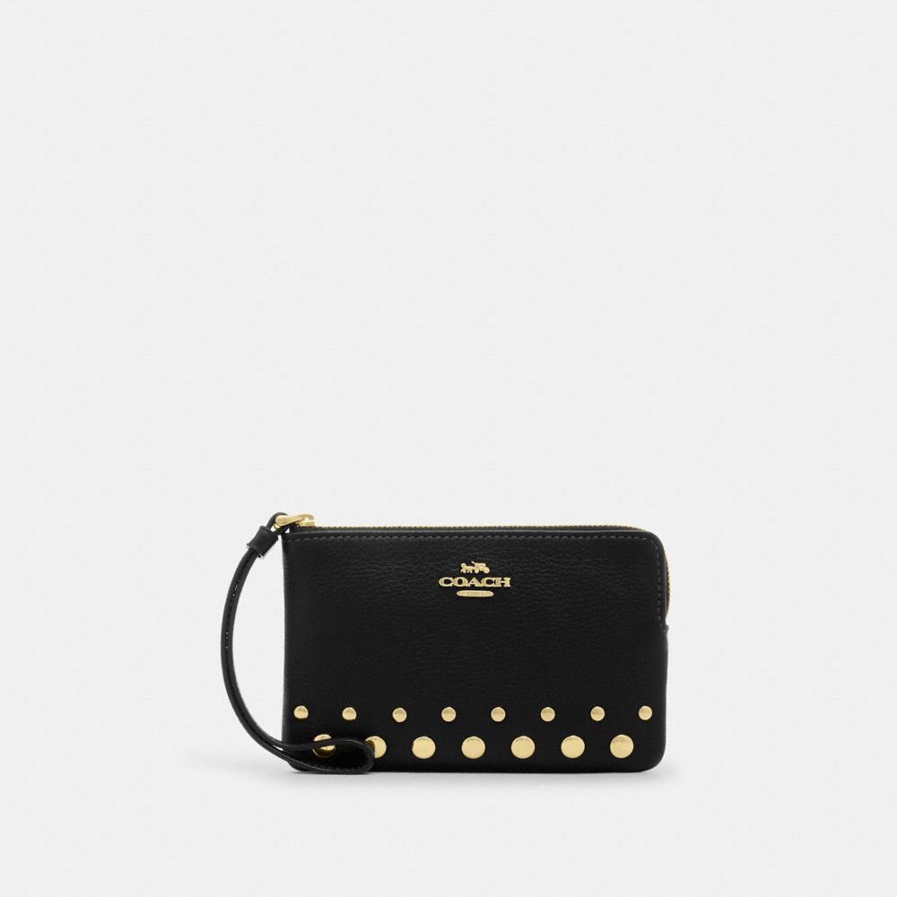COACH FACTORY OUTLET PRICE CHART - CAQ56 - CORNER ZIP WRISTLET WITH RIVETS - GOLD/BLACK