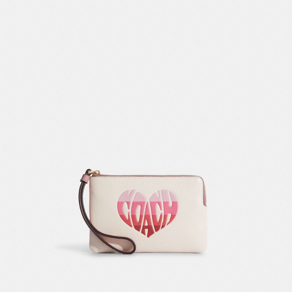 CORNER ZIP WRISTLET WITH STRIPE HEART MOTIF (COACH CA070)