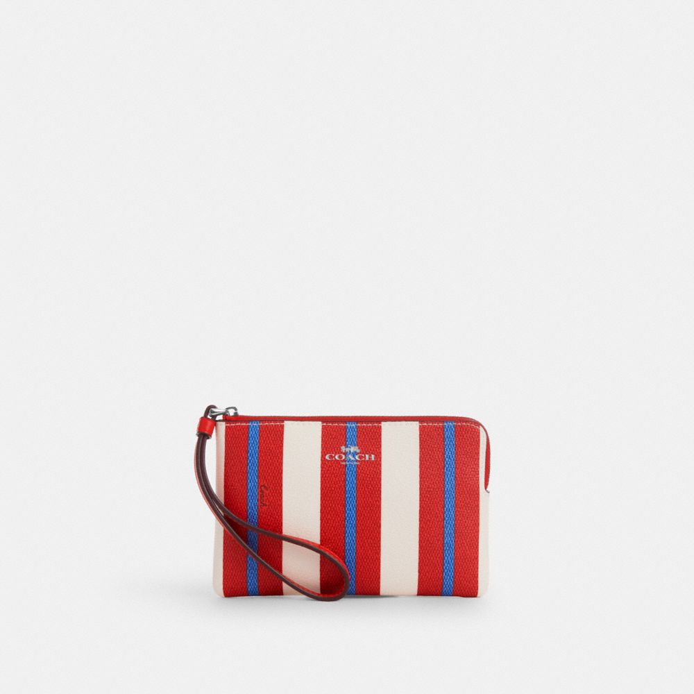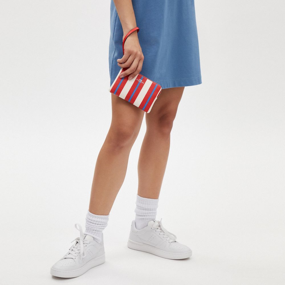 CORNER ZIP WRISTLET WITH STRIPE PRINT (COACH CT990)