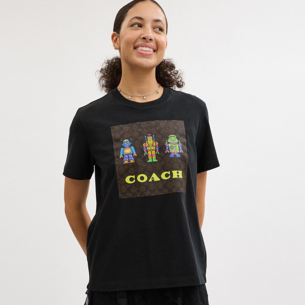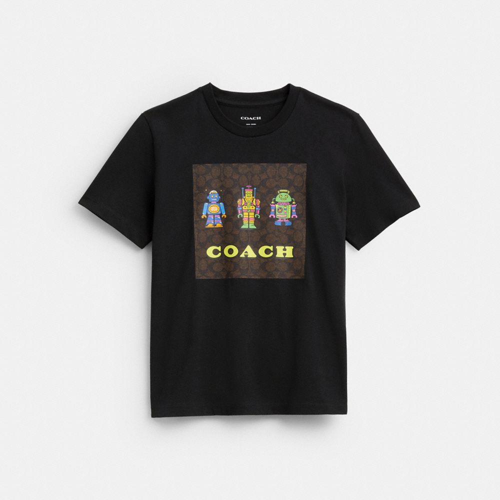 COACH FACTORY OUTLET PRICE CHART - CX184 - COSMIC COACH ROBOT PRINT SIGNATURE SQUARE T SHIRT IN ORGANIC COTTON - BLACK