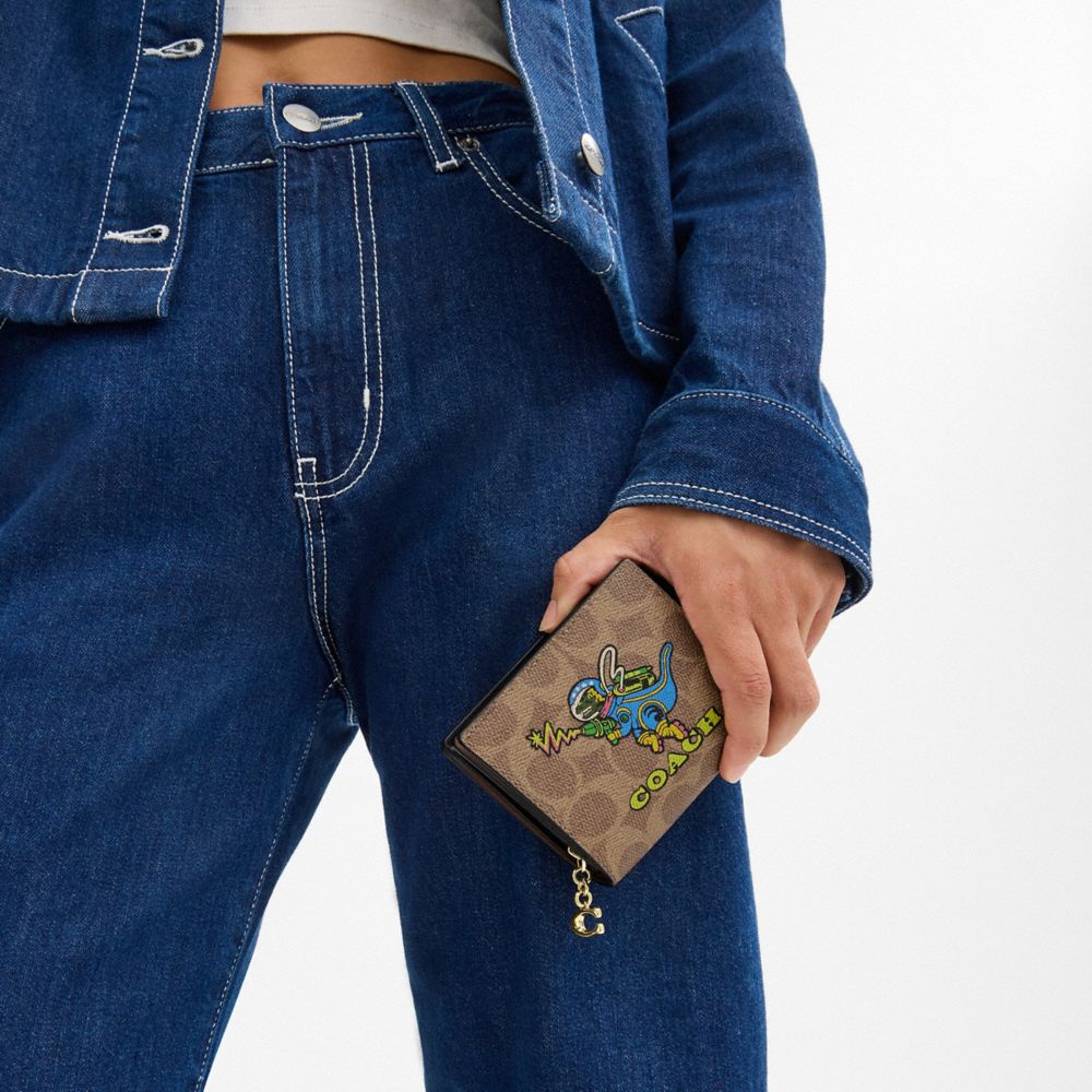 COACH FACTORY OUTLET PRICE CHART - CW463 - COSMIC COACH SNAP WALLET IN SIGNATURE CANVAS WITH REXY PRINT - GOLD/TAN MULTI