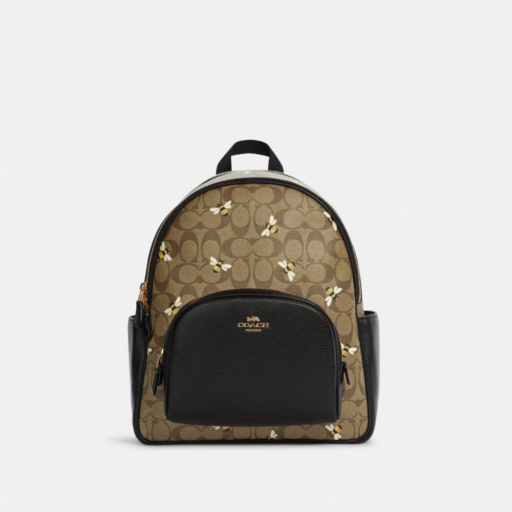 COACH FACTORY OUTLET PRICE CHART - C8592 - COURT BACKPACK IN SIGNATURE CANVAS WITH BEE PRINT - GOLD/KHAKI MULTI