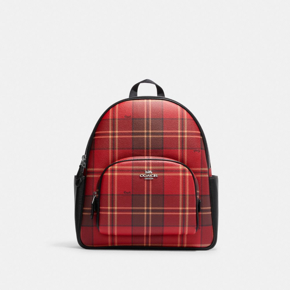 COACH FACTORY OUTLET PRICE CHART - CC145 - COURT BACKPACK WITH TARTAN PLAID PRINT - SV/RED/BLACK MULTI