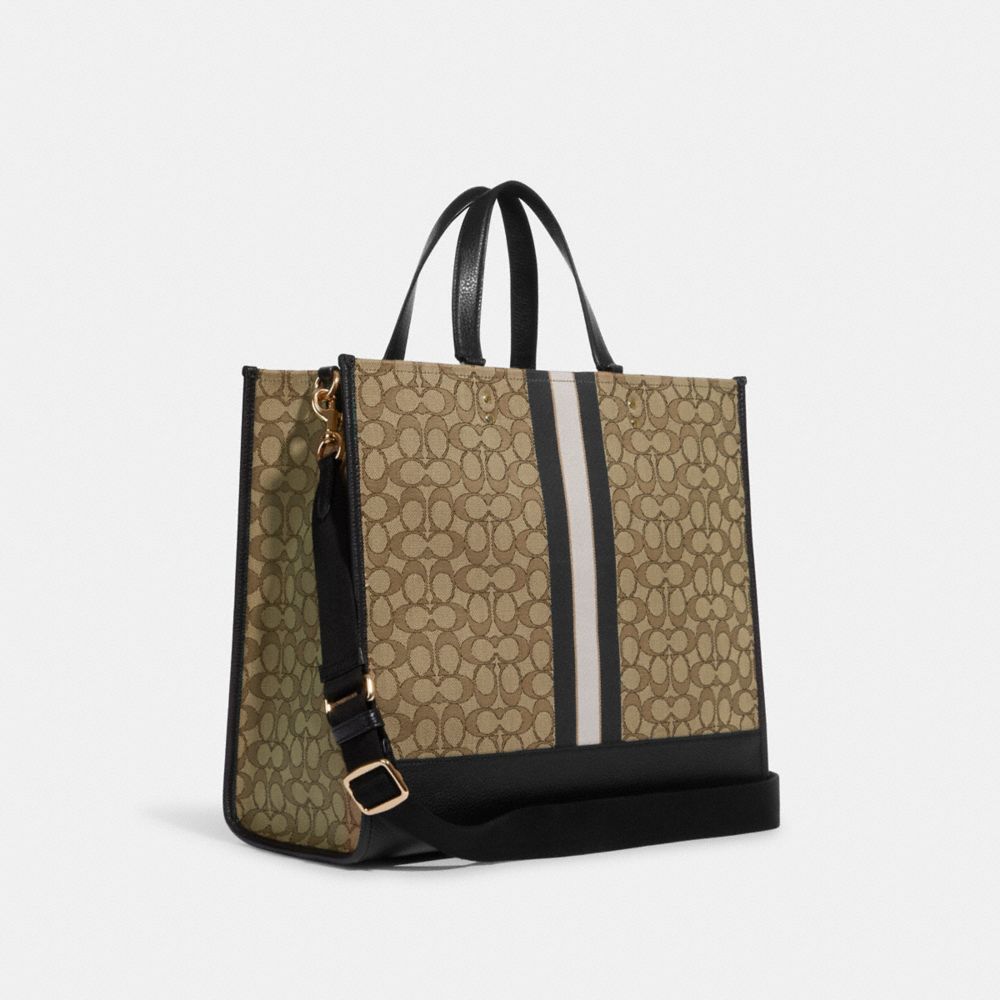 COACH FACTORY OUTLET PRICE CHART - C1548 - DEMPSEY TOTE 40 IN SIGNATURE JACQUARD WITH STRIPE AND COACH PATCH - GOLD/KHAKI BLACK MULTI
