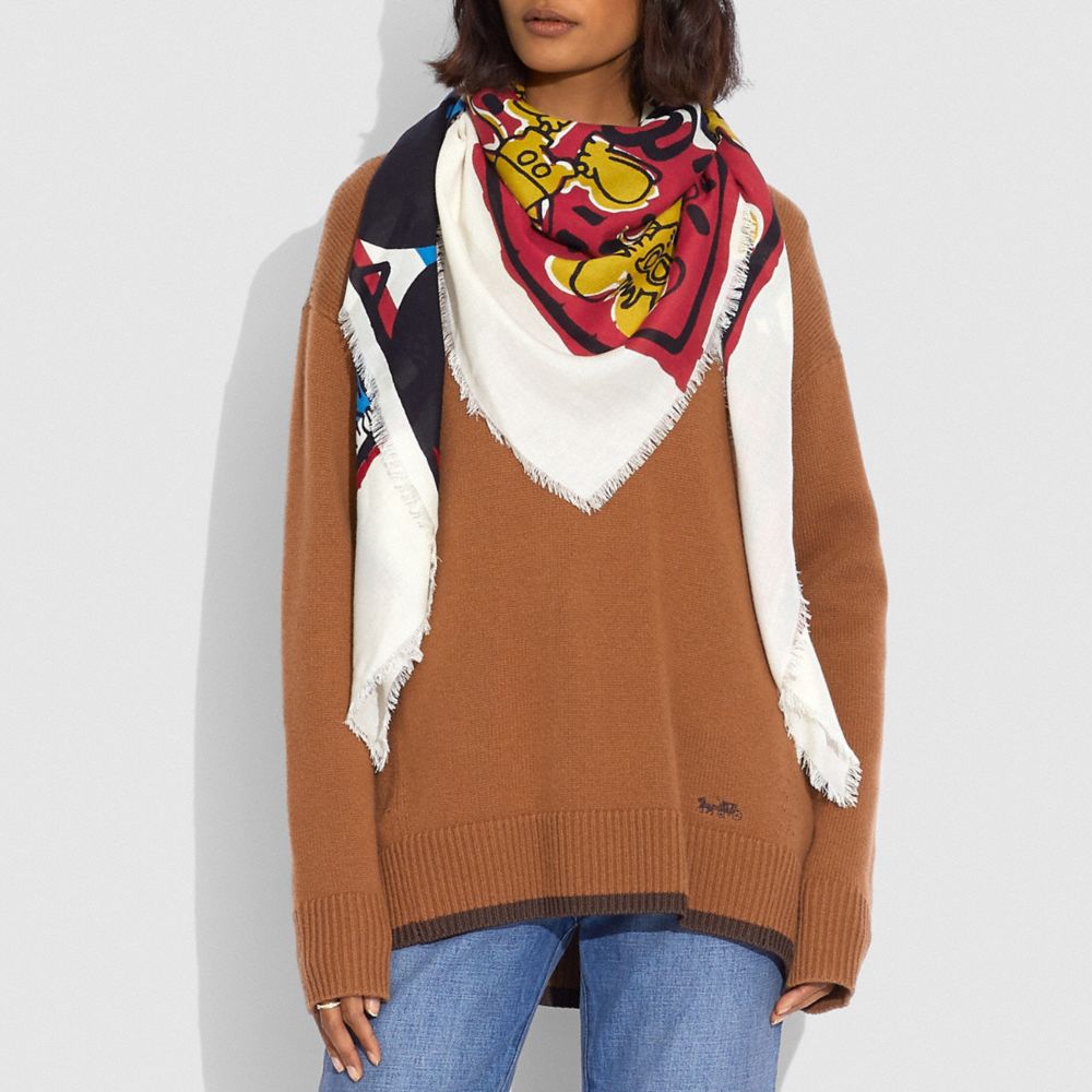 DISNEY MICKEY MOUSE X KEITH HARING OVERSIZED SQUARE SCARF (COACH 6144)