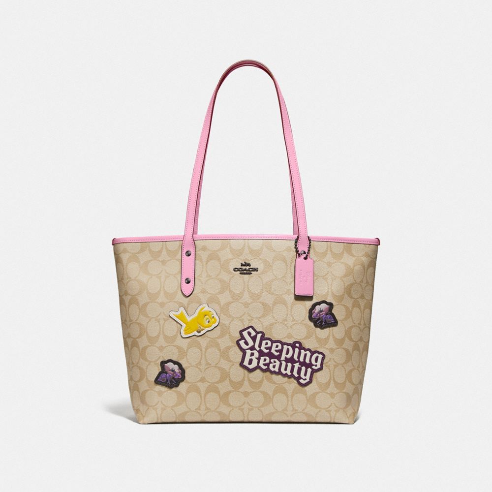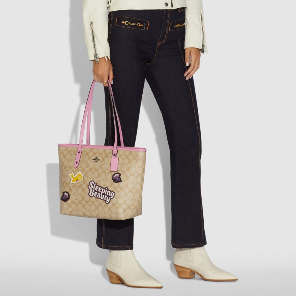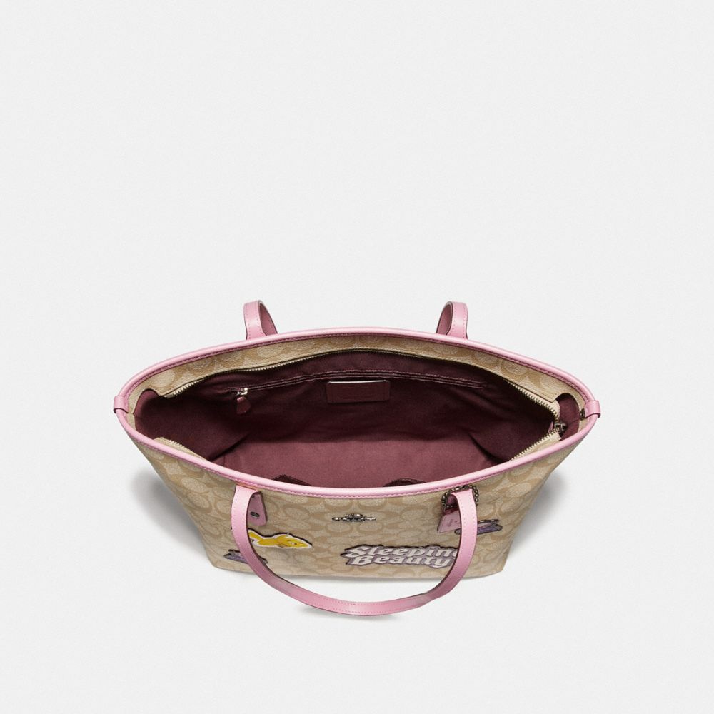 DISNEY X COACH CITY ZIP TOTE IN SIGNATURE CANVAS WITH SLEEPING BEAUTY (COACH F73359)