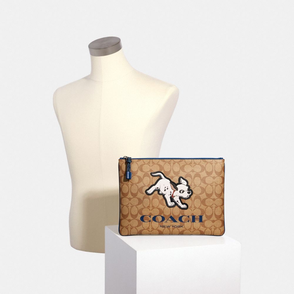 DISNEY X COACH LARGE POUCH IN SIGNATURE CANVAS WITH DALMATIAN (COACH 91247)
