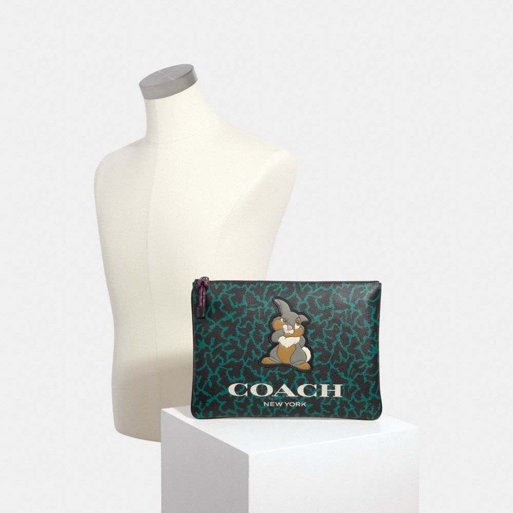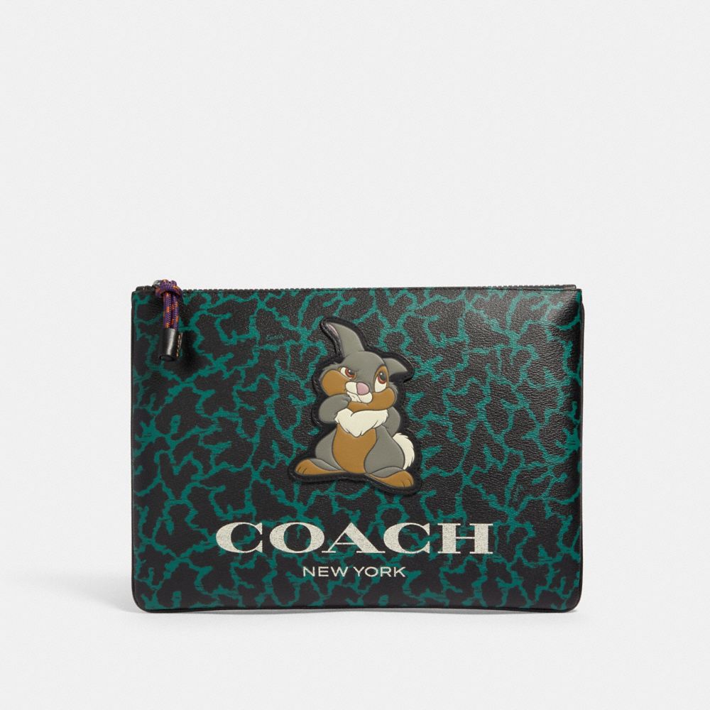 COACH FACTORY OUTLET PRICE CHART - 91217 - DISNEY X COACH LARGE POUCH WITH WAVY ANIMAL PRINT AND THUMPER - QB/DARK GREEN MULTI