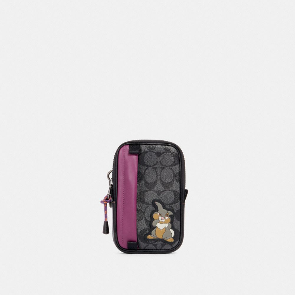 COACH FACTORY OUTLET PRICE CHART - 91244 - DISNEY X COACH NORTH/SOUTH HYBRID POUCH IN SIGNATURE CANVAS WITH THUMPER - QB/CHARCOAL PLUM MULTI
