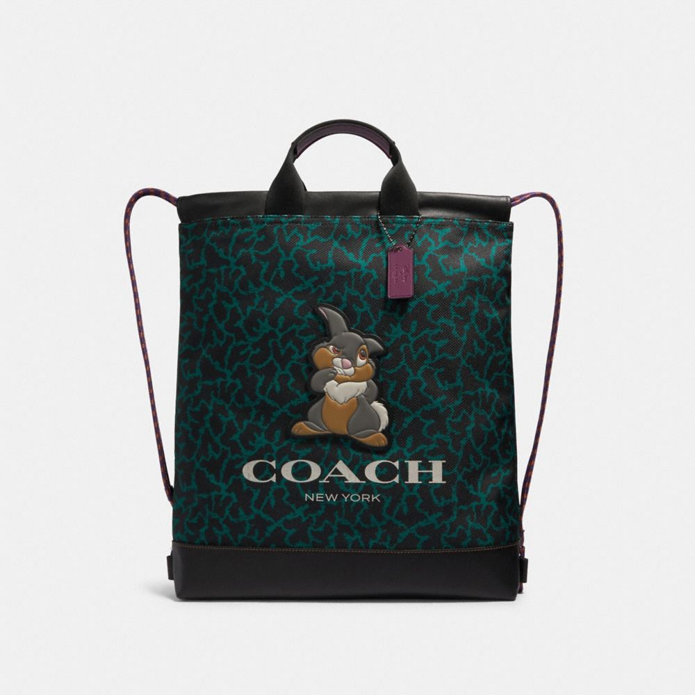 DISNEY X COACH TERRAIN DRAWSTRING BACKPACK WITH WAVY ANIMAL PRINT AND THUMPER (COACH 89900)
