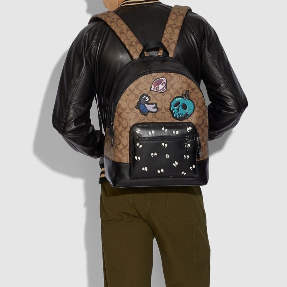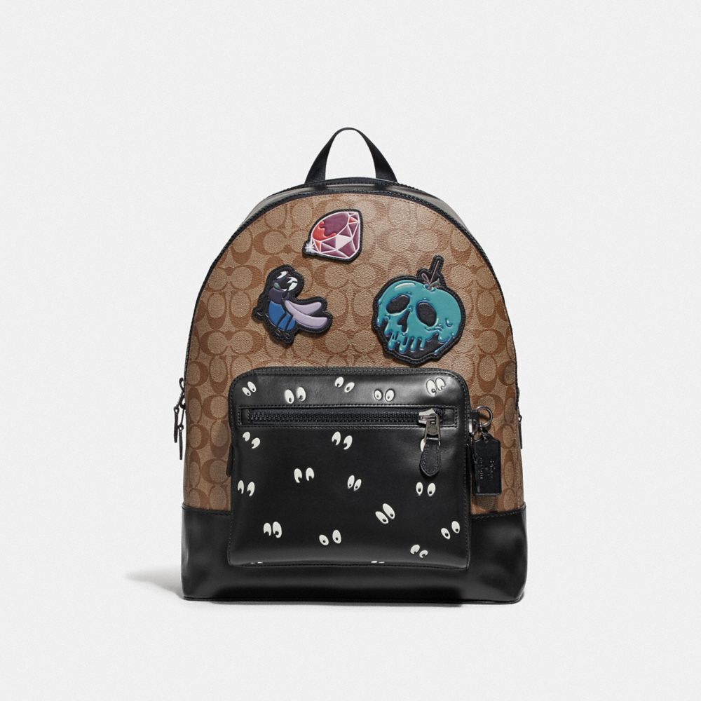 DISNEY X COACH WEST BACKPACK IN SIGNATURE CANVAS WITH SNOW WHITE AND THE SEVEN DWARFS PATCHES (COACH F72954)