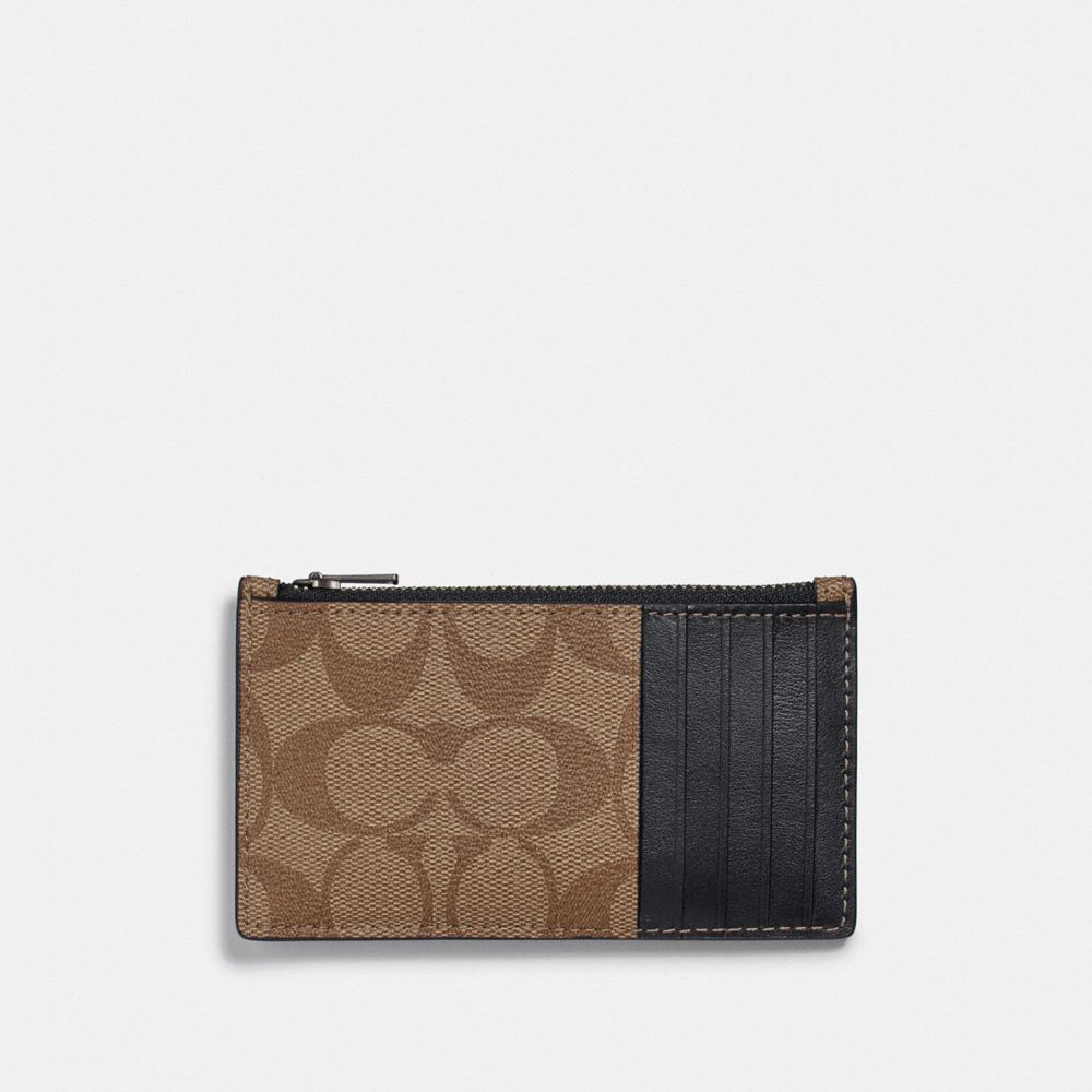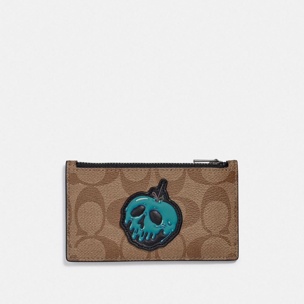 DISNEY X COACH ZIP CARD CASE IN SIGNATURE CANVAS WITH SNOW WHITE AND THE SEVEN DWARFS PATCH (COACH F75803)