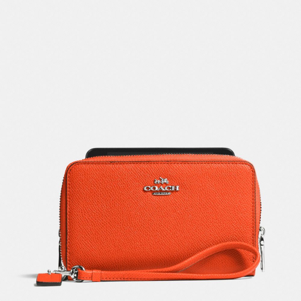 DOUBLE ZIP PHONE WALLET IN EMBOSSED TEXTURED LEATHER (COACH F63112)