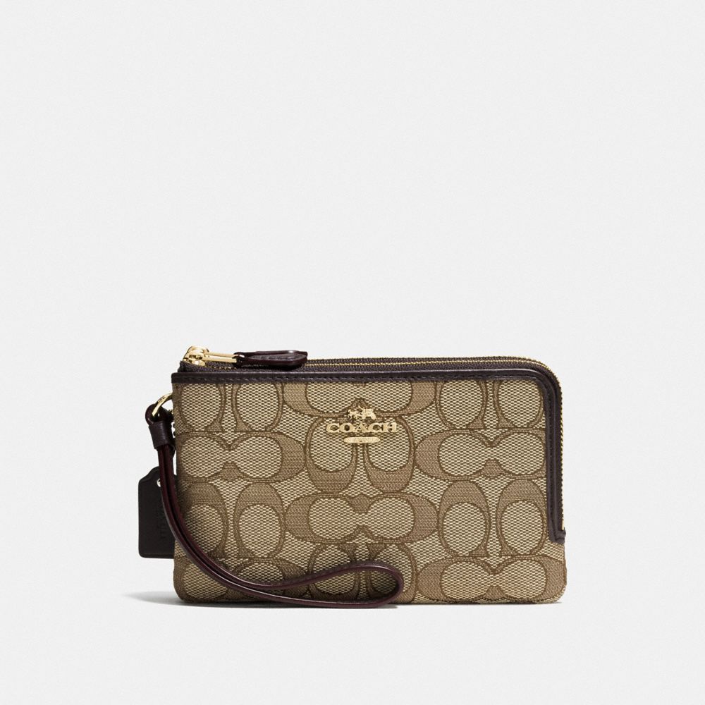COACH FACTORY OUTLET PRICE CHART - F55361 - DOUBLE CORNER ZIP WRISTLET IN SIGNATURE JACQUARD - LI/KHAKI/BROWN