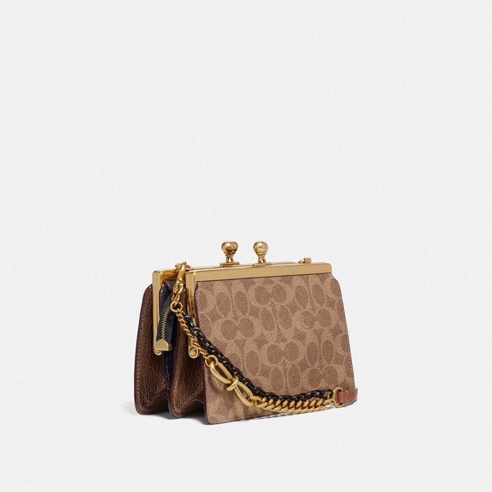 COACH FACTORY OUTLET PRICE CHART - 76121 - DOUBLE FRAME BAG 19 IN SIGNATURE CANVAS WITH REXY BY SUI JIANGUO - B4/TAN 1941 SADDLE