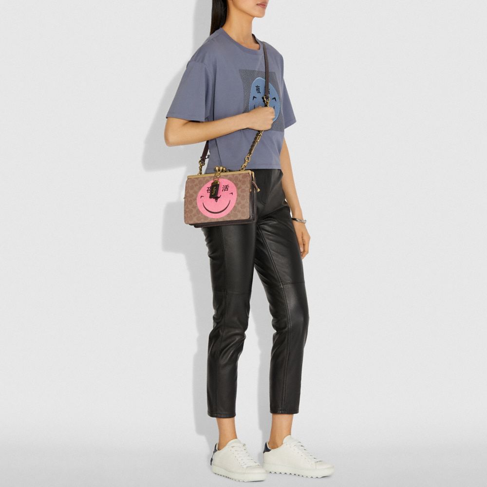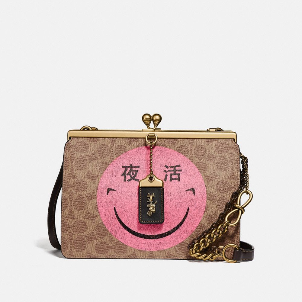 DOUBLE FRAME BAG IN SIGNATURE CANVAS WITH REXY BY YETI OUT (COACH 75205)