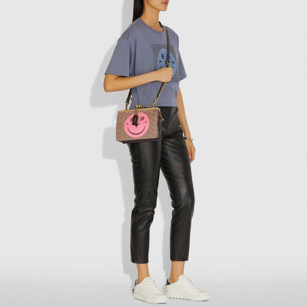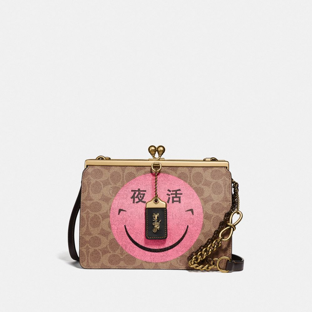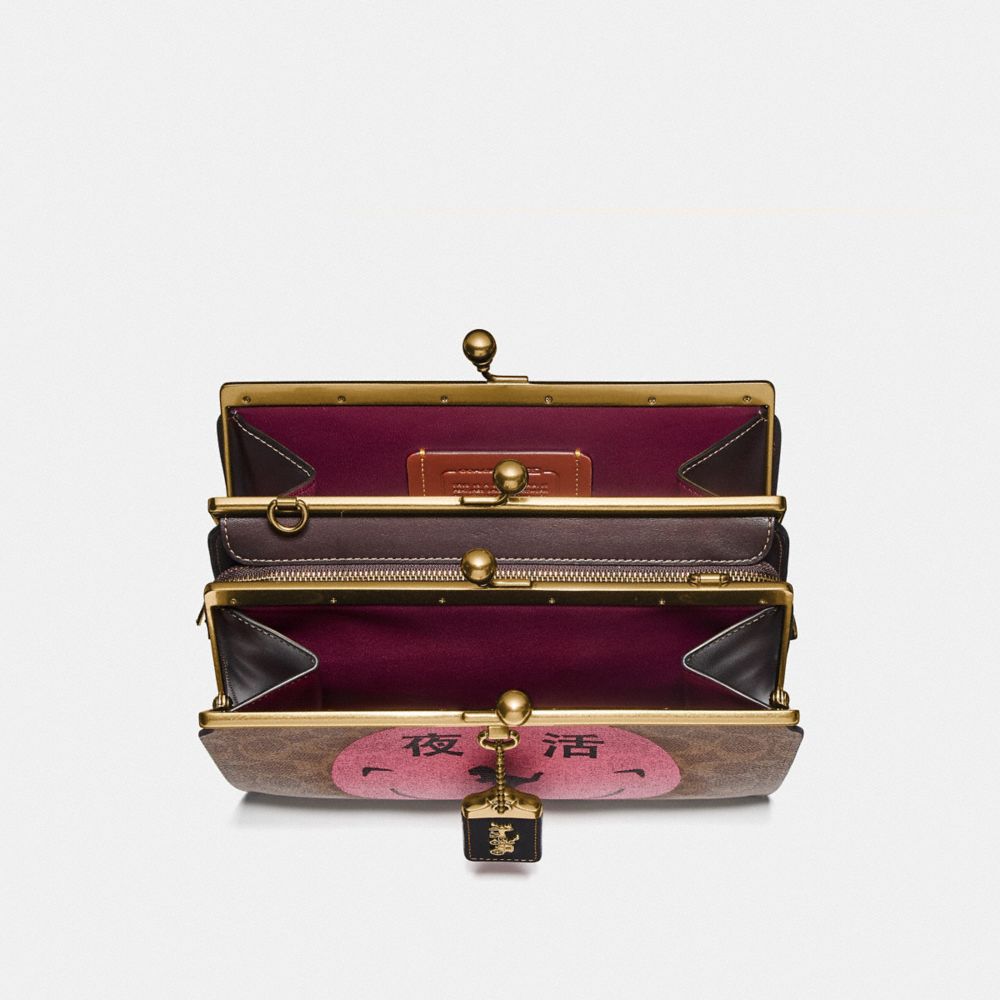 DOUBLE FRAME BAG IN SIGNATURE CANVAS WITH REXY BY YETI OUT (COACH F75205)