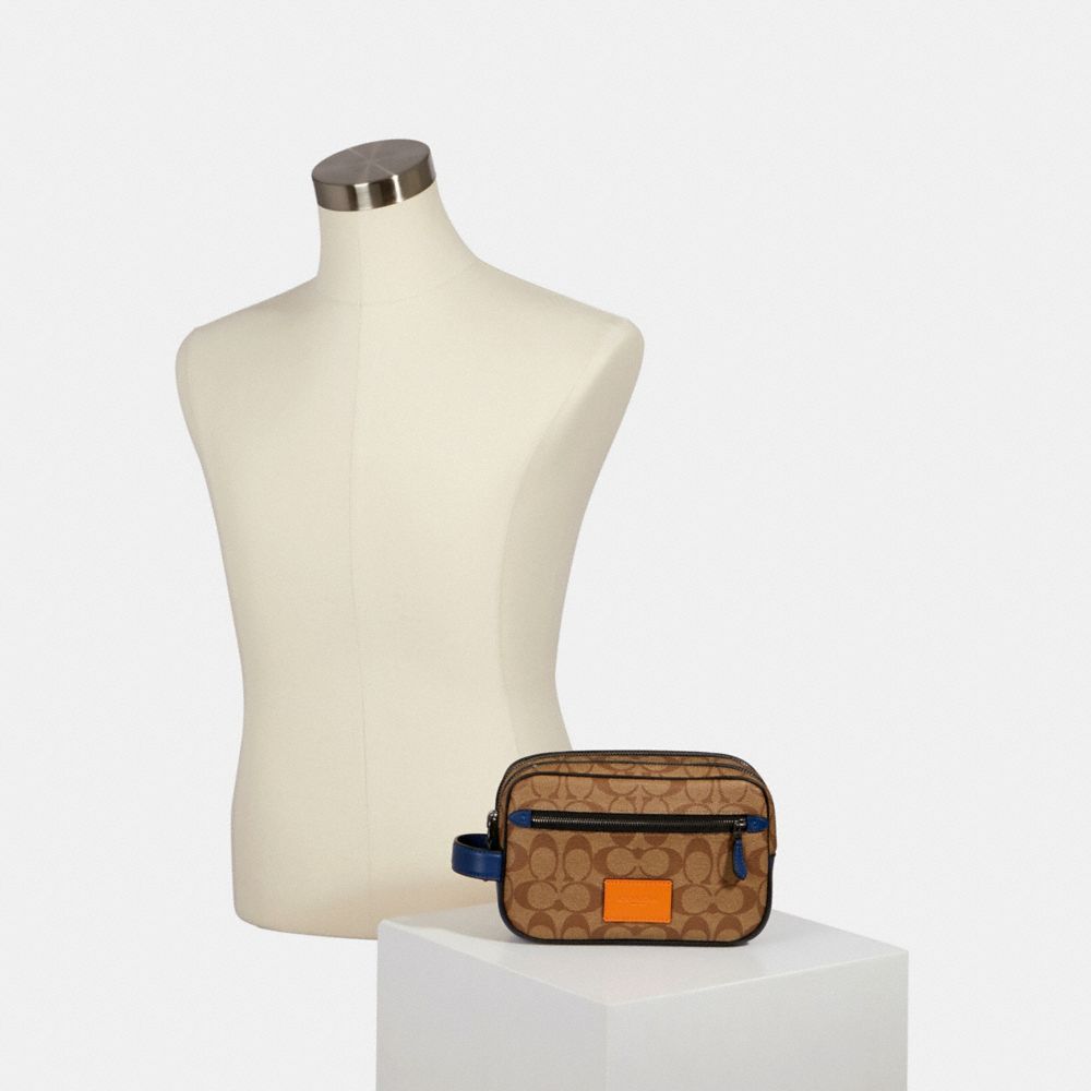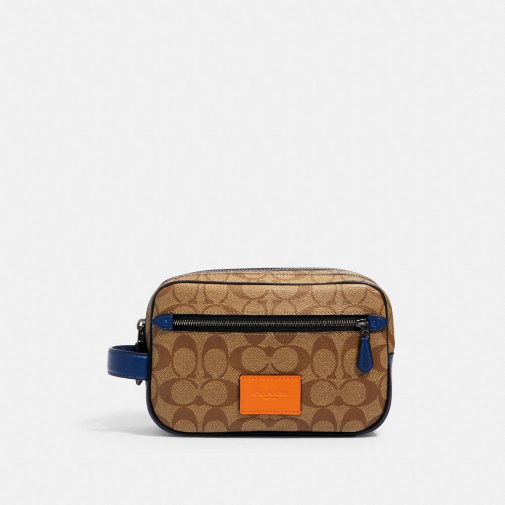 DOUBLE ZIP OVERNIGHT KIT IN COLORBLOCK SIGNATURE CANVAS (COACH 91281)