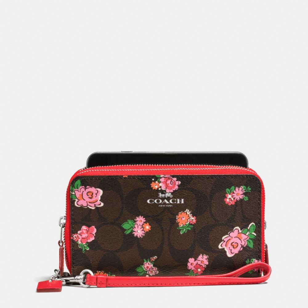 DOUBLE ZIP PHONE WALLET IN FLORAL LOGO PRINT (COACH F57959)