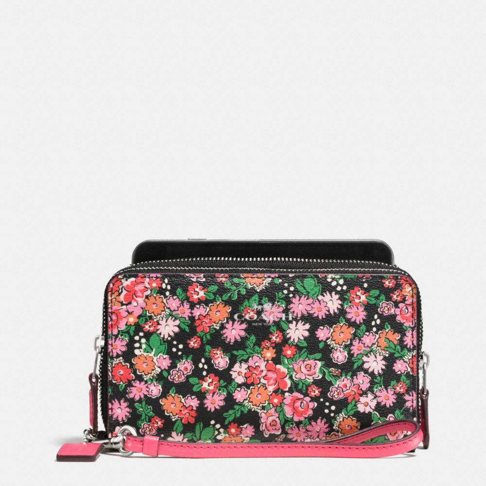 DOUBLE ZIP PHONE WALLET IN POSEY CLUSTER FLORAL PRINT (COACH F57961)