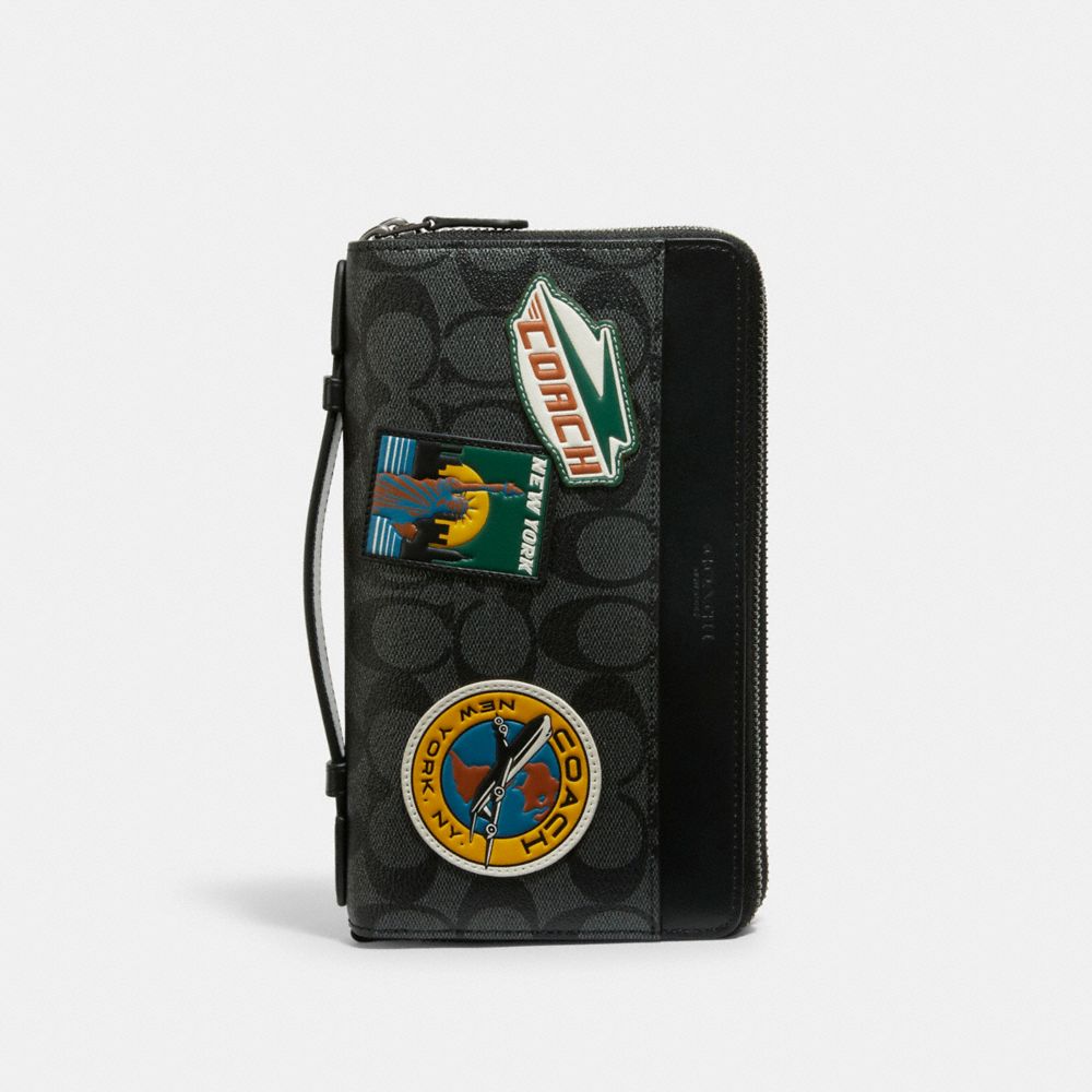 DOUBLE ZIP TRAVEL ORGANIZER IN SIGNATURE CANVAS WITH TRAVEL PATCHES (COACH 1282)