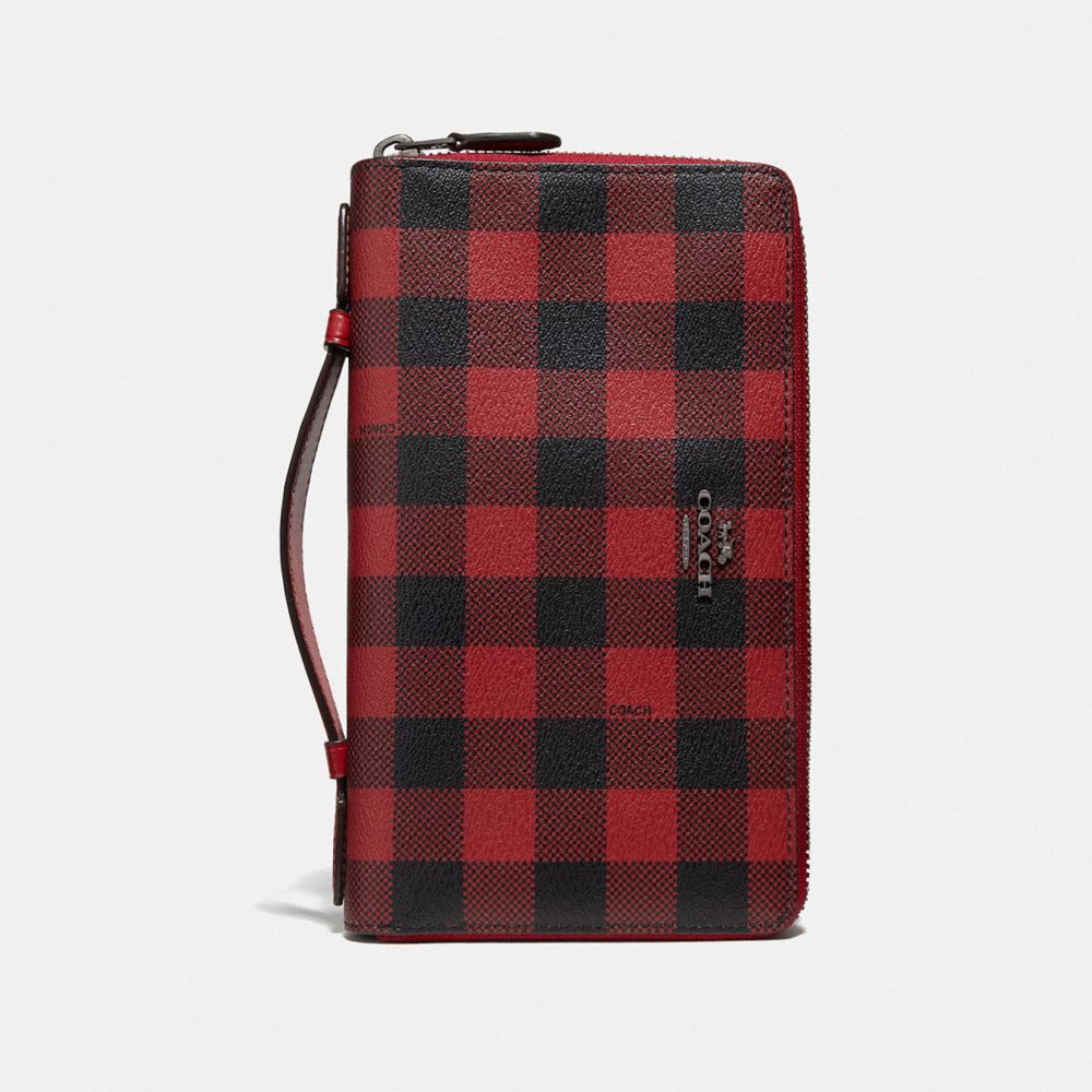 DOUBLE ZIP TRAVEL WALLET WITH GINGHAM PRINT (COACH F39148)