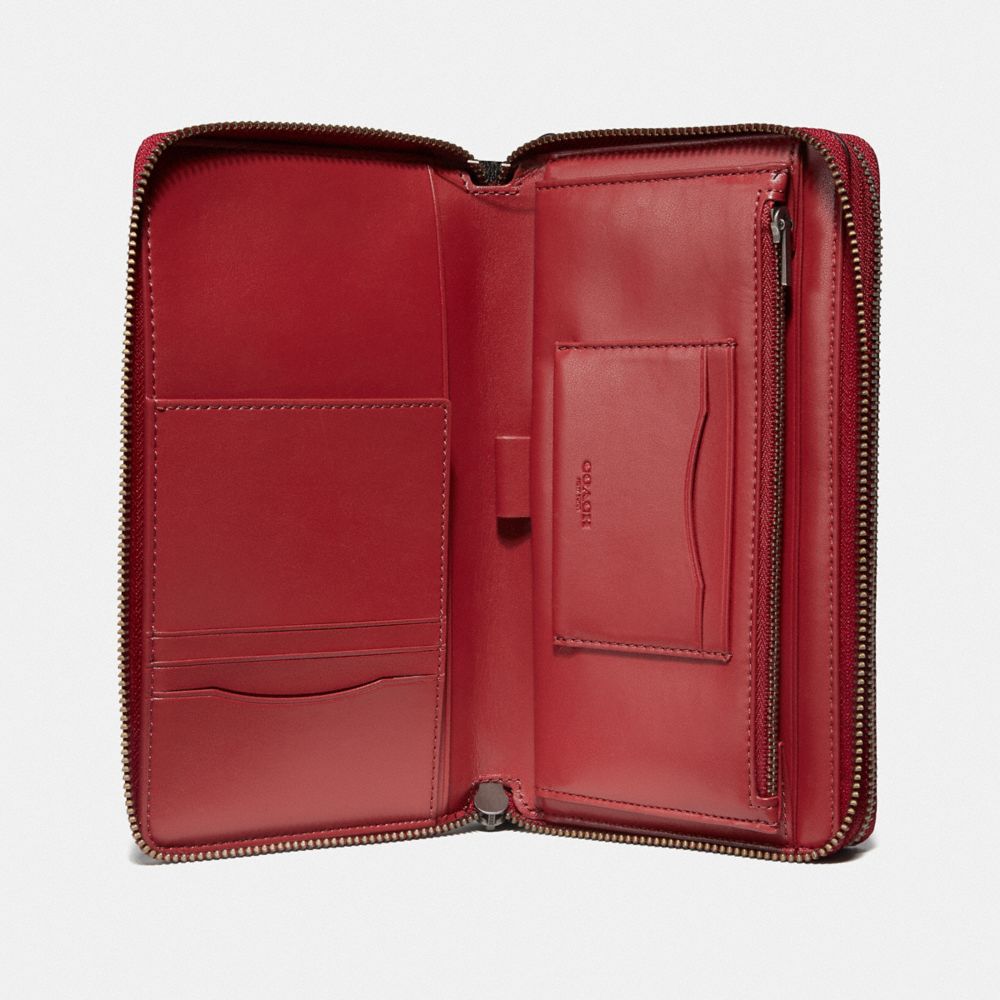 COACH FACTORY OUTLET PRICE CHART - F39148 - DOUBLE ZIP TRAVEL WALLET WITH GINGHAM PRINT - RUBY MULTI/BLACK ANTIQUE NICKEL