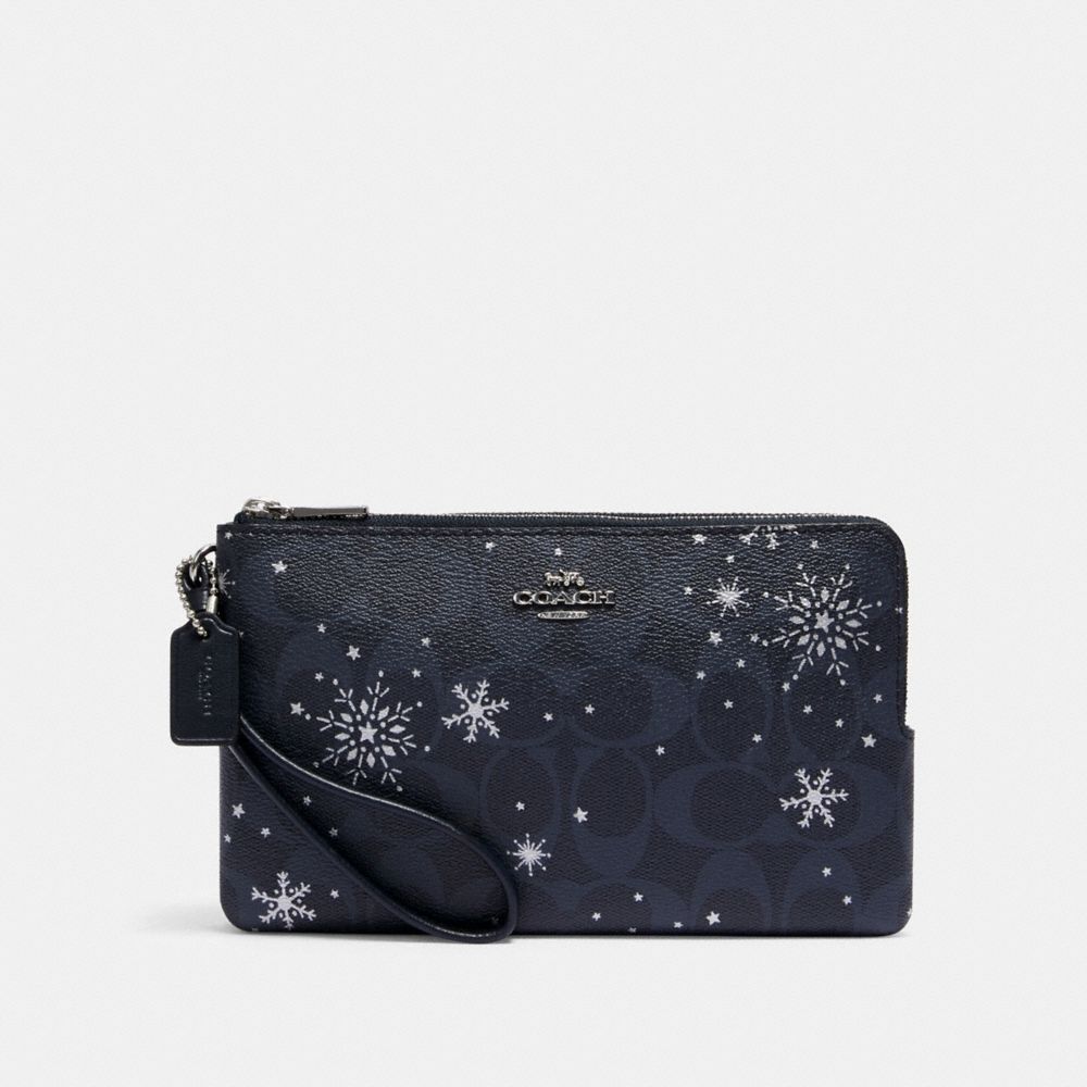 DOUBLE ZIP WALLET IN SIGNATURE CANVAS WITH SNOWFLAKE PRINT (COACH C1929)