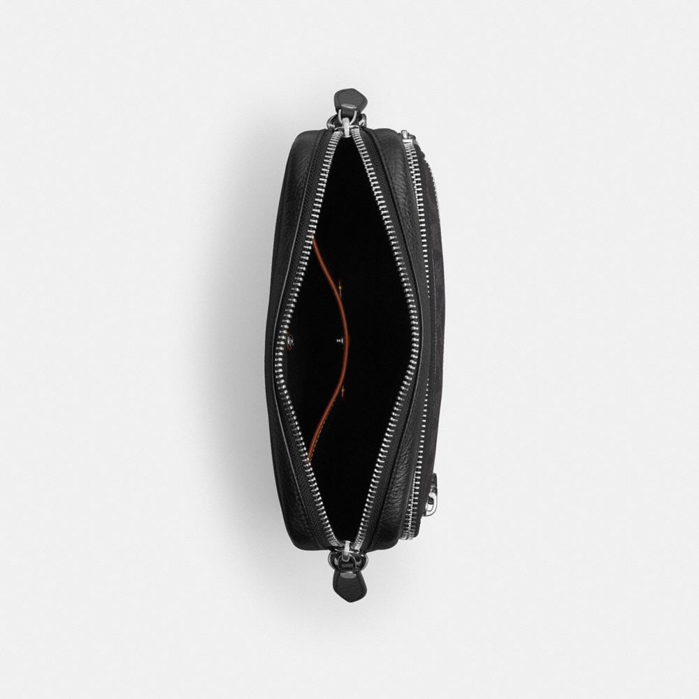 Signature coated canvas and buffalo-embossed leather| Inside snap pocket| Zip closure, fabric lining| Detachable handle with 7 1/2" drop| Outside zip pockets| Detachable strap with 22" drop for shoulder or crossbody wear| 9 1/2" (L) x 7" (H) x 3" (W)|Style No. CDS85