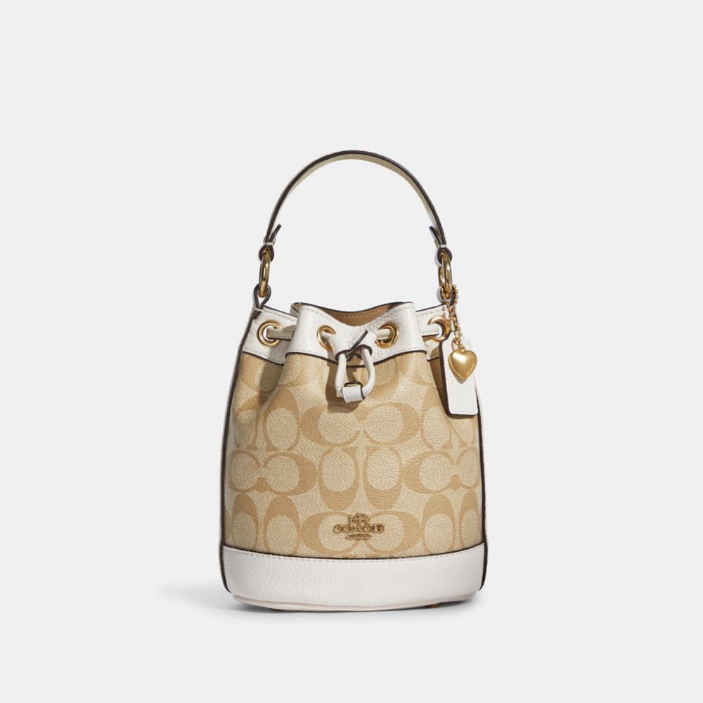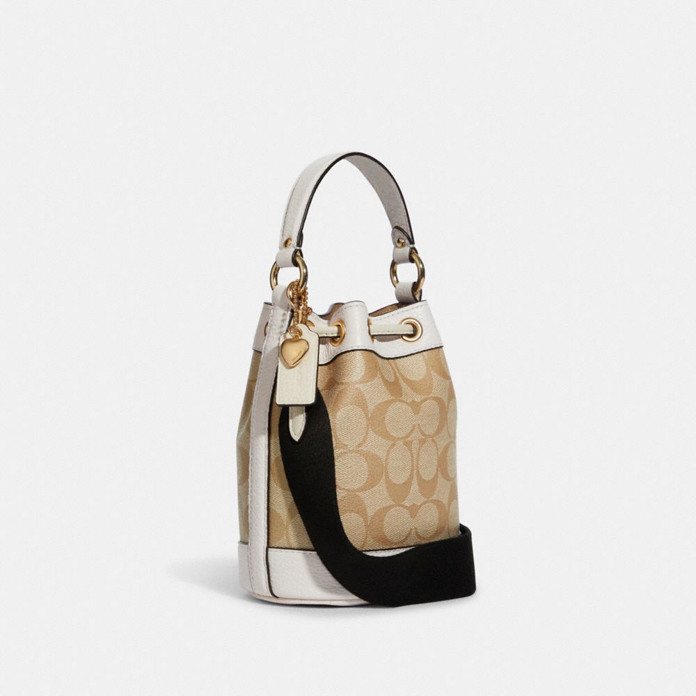 COACH FACTORY OUTLET PRICE CHART - C8069 - DEMPSEY BUCKET BAG 15 IN SIGNATURE CANVAS WITH HEART CHARM - GOLD/LIGHT KHAKI CHALK