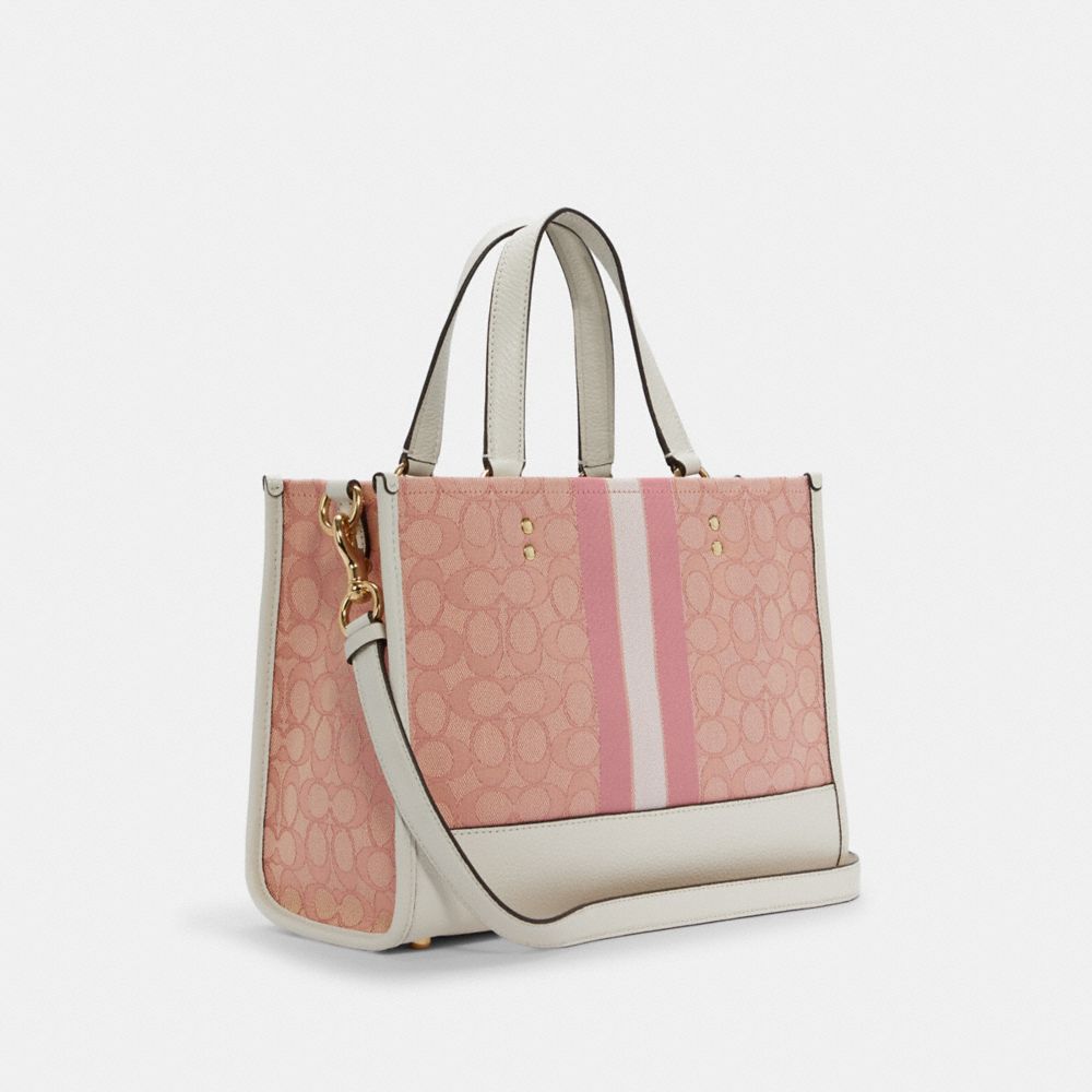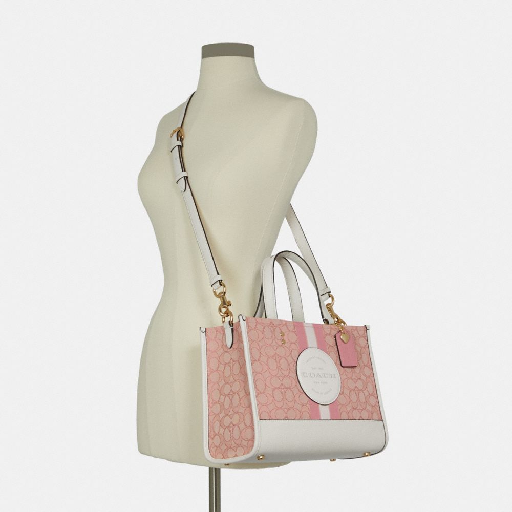 COACH FACTORY OUTLET PRICE CHART - C7685 - DEMPSEY CARRYALL IN SIGNATURE JACQUARD WITH COACH PATCH AND HEART CHARM - GOLD/CHALK/PINK MULTI