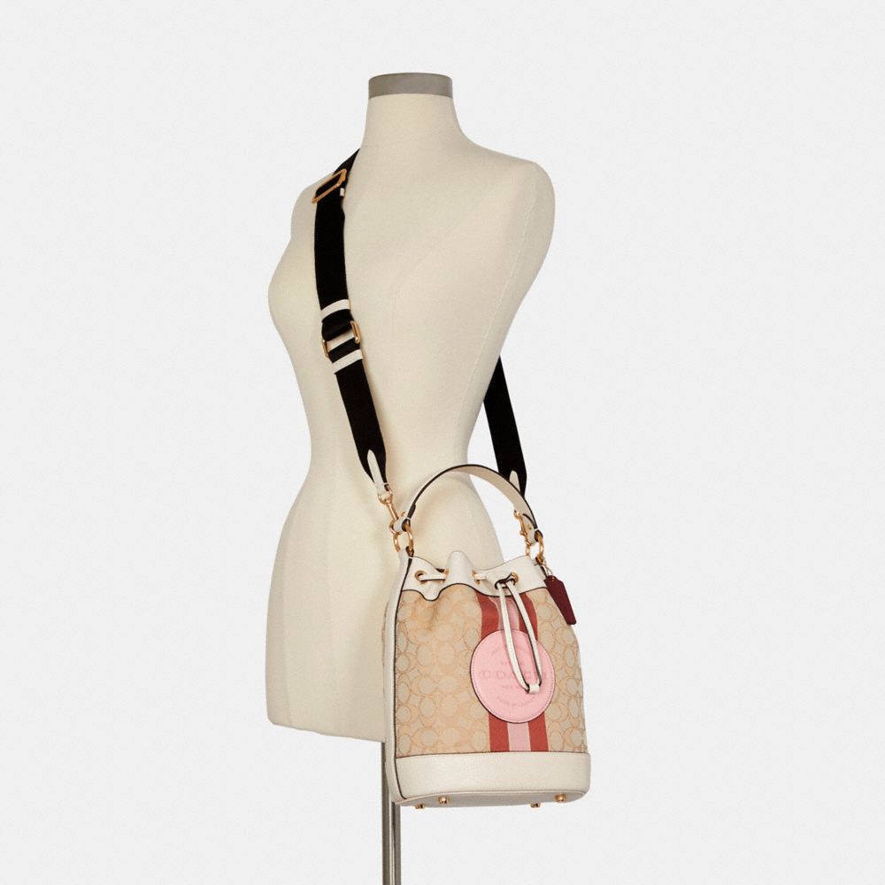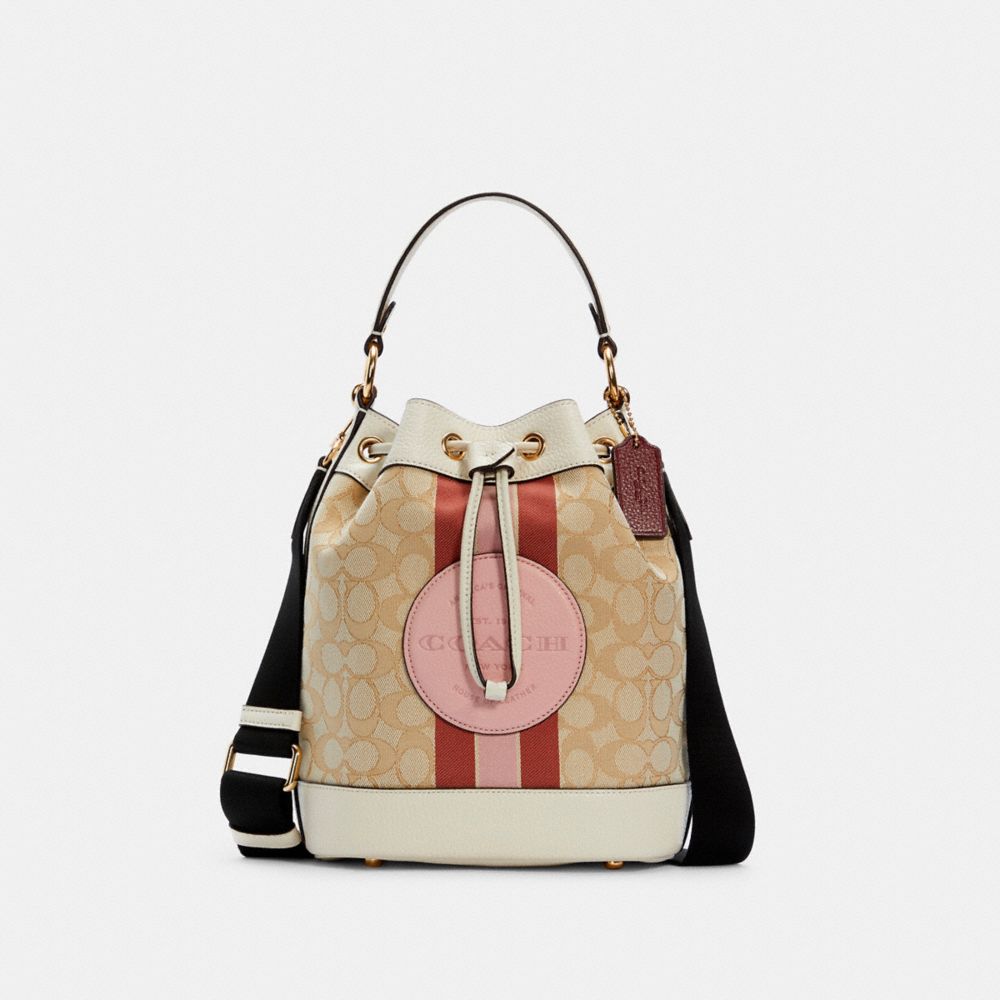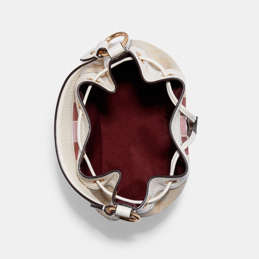 COACH FACTORY OUTLET PRICE CHART - C4102 - DEMPSEY DRAWSTRING BUCKET BAG IN SIGNATURE JACQUARD WITH STRIPE AND COACH PATCH - IM/LT KHAKI/POWDER PINK MULTI