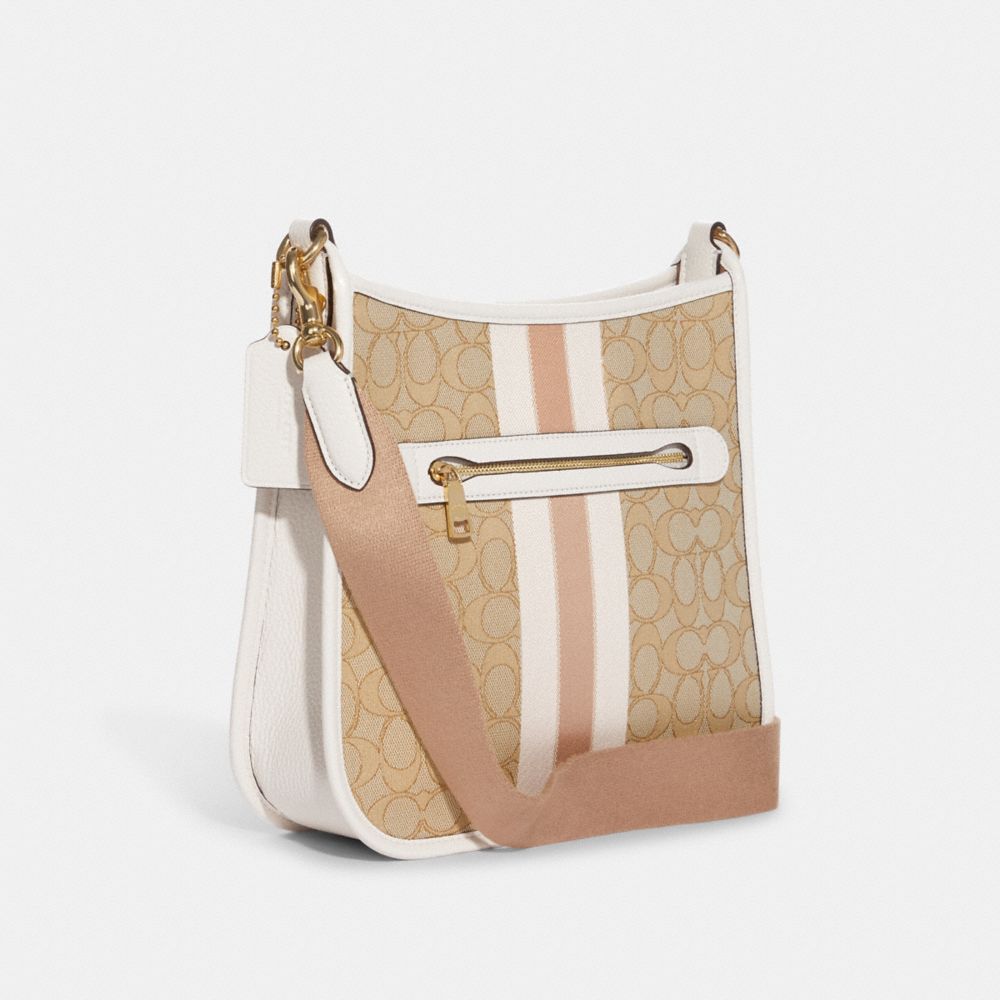 COACH FACTORY OUTLET PRICE CHART - CA195 - DEMPSEY FILE BAG IN SIGNATURE JACQUARD WITH STRIPE AND COACH PATCH - GOLD/LIGHT KHAKI CHALK